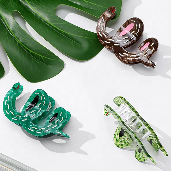 กิ๊บติดผมอะซิเตทลายคลื่นน้ำรูปงู ดีไซน์ใหม่ สีเขียวสดใส สวยหรู สำหรับสาวๆ ใช้ได้ทุกวัน