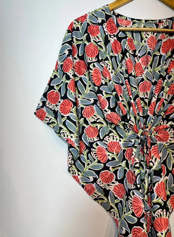 ชุดคลุมยาวลายสัตว์พิมพ์ใหม่ ทรงเข้ารูป คอวี มีเชือกผูก เอวสูง ผ้าฝ้ายอินเดียเนื้อนุ่ม แต่งลูกไม้ เหมาะสำหรับใส่ไปทะเล ชุดเพื่อนเจ้าสาว สำหรับผู้หญิง