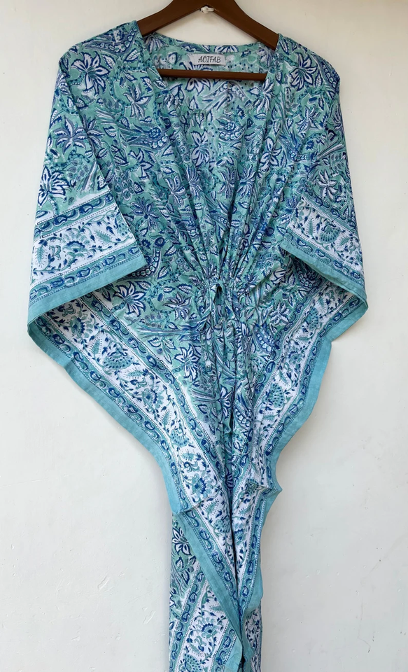 ชุดคลุมยาวลายสัตว์ คอวี ผูกเชือก ทรงปล่อยชายระบาย ผ้าฝ้ายอินเดียเนื้อนุ่ม แต่งลูกไม้ เหมาะสำหรับใส่ไปทะเล ชุดเพื่อนเจ้าสาว สำหรับผู้หญิง