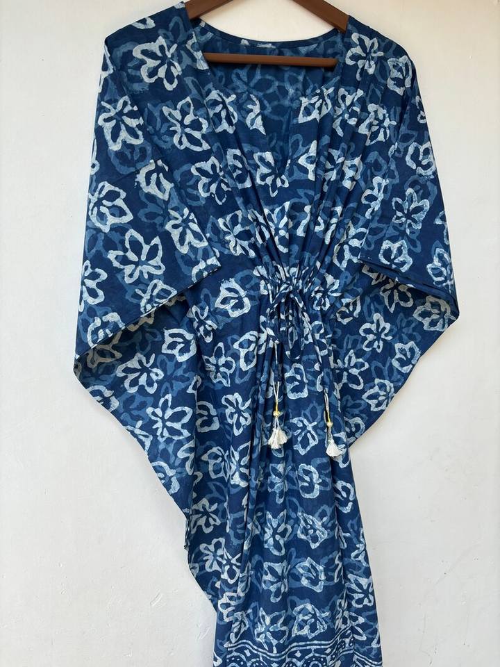 ชุดคลุมยาวทรงปล่อยชายพิมพ์ลายสัตว์สุดหรู ดีไซน์คอวี ปิดด้วยเชือกผูก เอวเข้ารูป ผ้าฝ้ายอินเดียเนื้อนุ่ม แต่งลูกไม้ เหมาะสำหรับใส่ไปทะเลในช่วงฤดูร้อน