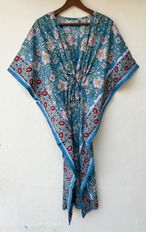 ชุดคลุมชายหาดลายสัตว์แบบใหม่ คอวี ปิดด้วยเชือกผูก ทรงปล่อยชายระบาย ผ้าฝ้ายอินเดียเนื้อนุ่ม แต่งลูกไม้ ยาวเต็มตัว สำหรับผู้หญิง