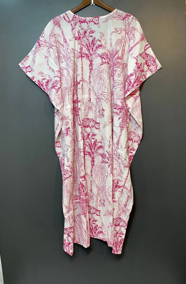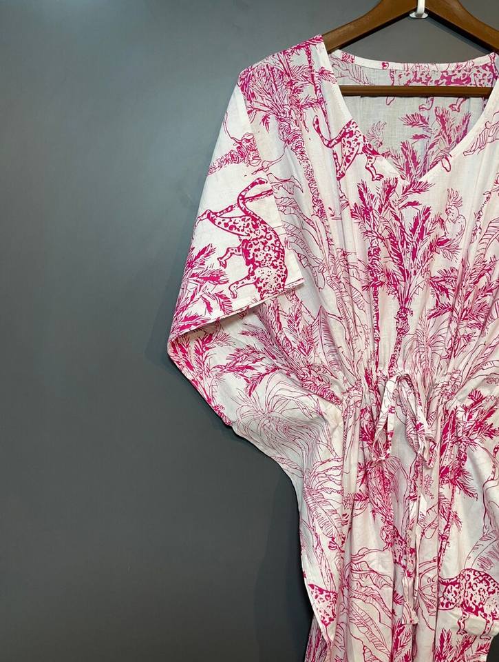 ชุดคลุมยาวลายสัตว์ คอวี ผูกเชือก ทรงปล่อยชายระบาย ผ้าฝ้ายอินเดียเนื้อนุ่ม แต่งลูกไม้ เหมาะสำหรับใส่ไปทะเล ชุดเพื่อนเจ้าสาว สำหรับผู้หญิง