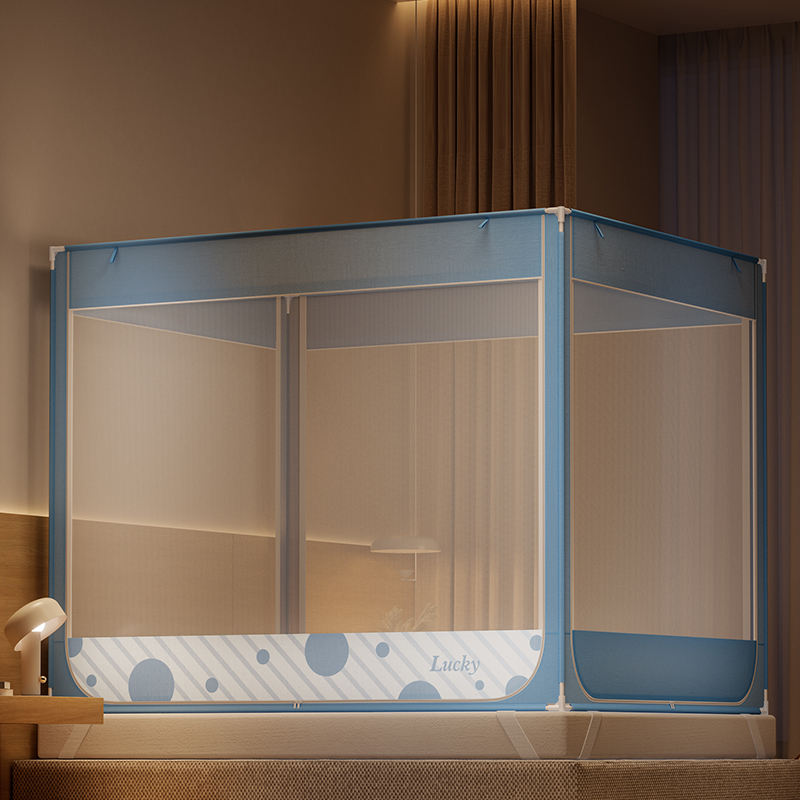 มุ้งกันยุงกันตกสำหรับเตียงตาข่ายทรงสี่เหลี่ยมแบบพกพาตาข่าย3ประตูถอดออกได้มุ้งกันยุง
