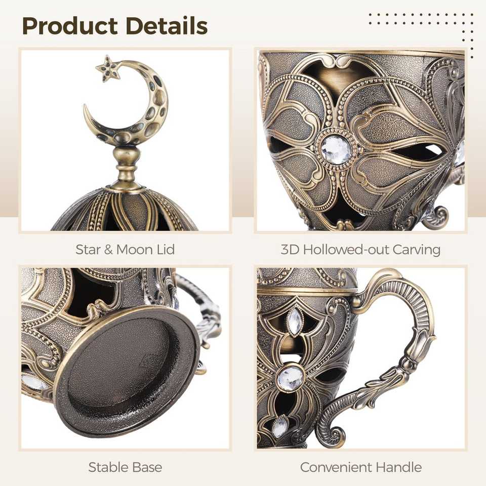 New Antique Gold Color Plated Incense Burner With Handle & Lid Round Shape Bakhoor Handmade Perfect for Home Tabletop Accessory