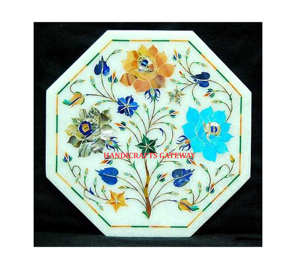 หินอ่อนสีขาวธรรมชาติหินอ่อนทรงแปดเหลี่ยมแบบผสมผสานการออกแบบลายดอกไม้แบบโบราณที่สวยงาม