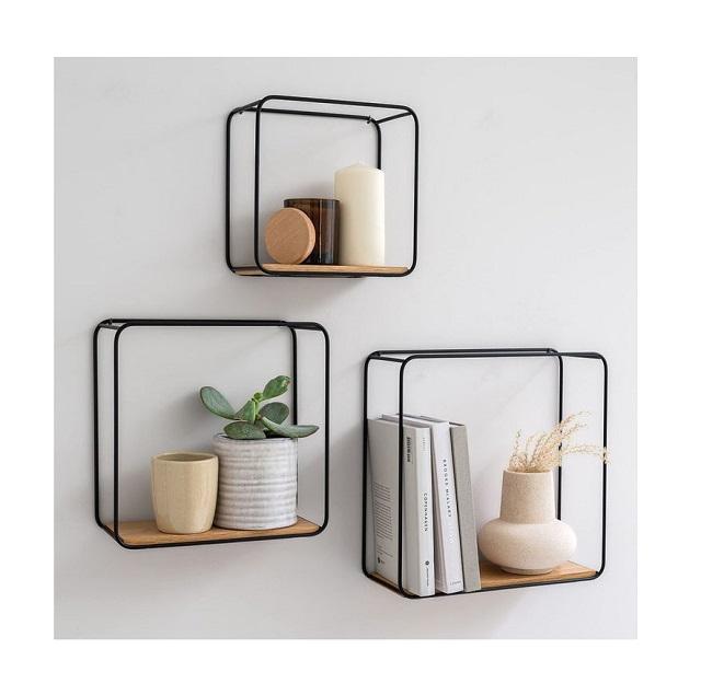 ชั้นวางติดผนังตกแต่งบ้านแบบโบราณพร้อมถาดไม้สีดำติดผนังสำเร็จรูป