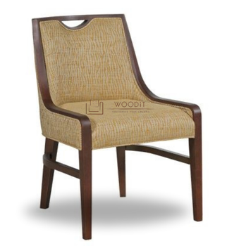 เก้าอี้ทานข้าวไม้เนื้อแข็งดีไซน์หรูหราทันสมัย รุ่น New Arm พร้อมผ้าหุ้มลายไม้โลหะ เป็นมิตรกับสิ่งแวดล้อมและทนทาน เหมาะสำหรับห้องนั่งเล่น