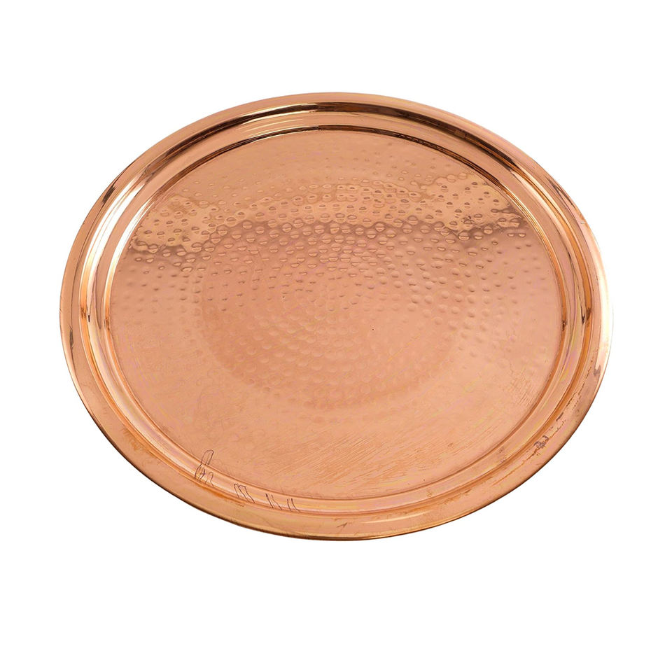 ถาดเสิร์ฟทองแดงทำมือลายตอกแบบใหม่ ขนาด 14 นิ้ว | ถาดทองแดงตกแต่งแบบดั้งเดิมสำหรับบ้าน รับประทานอาหาร และเป็นของขวัญในราคาประหยัด
