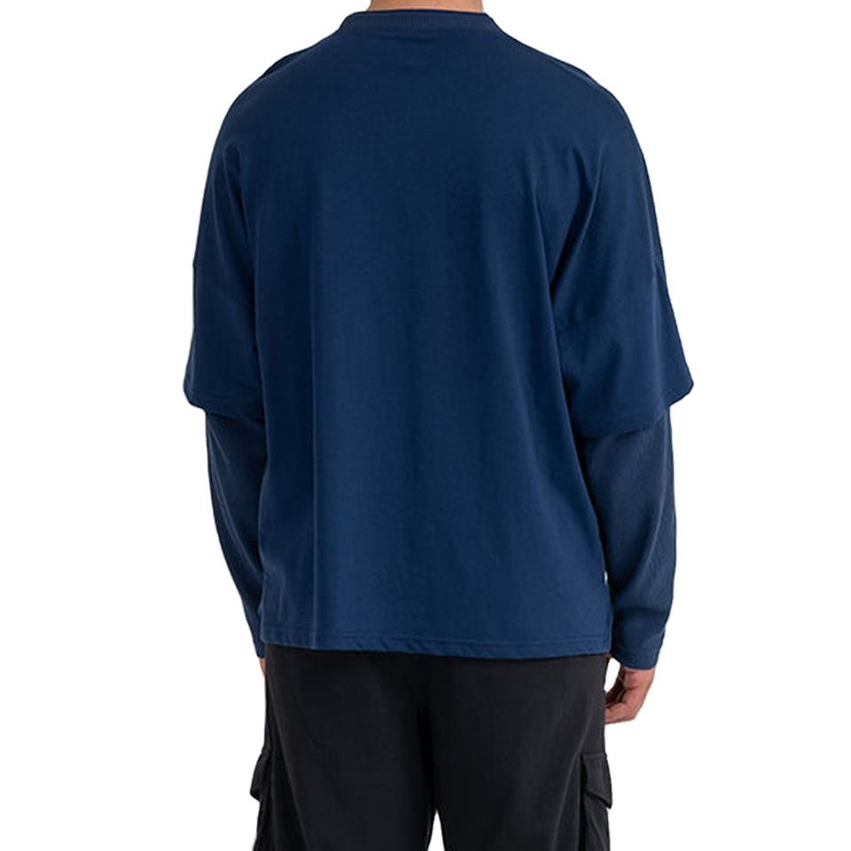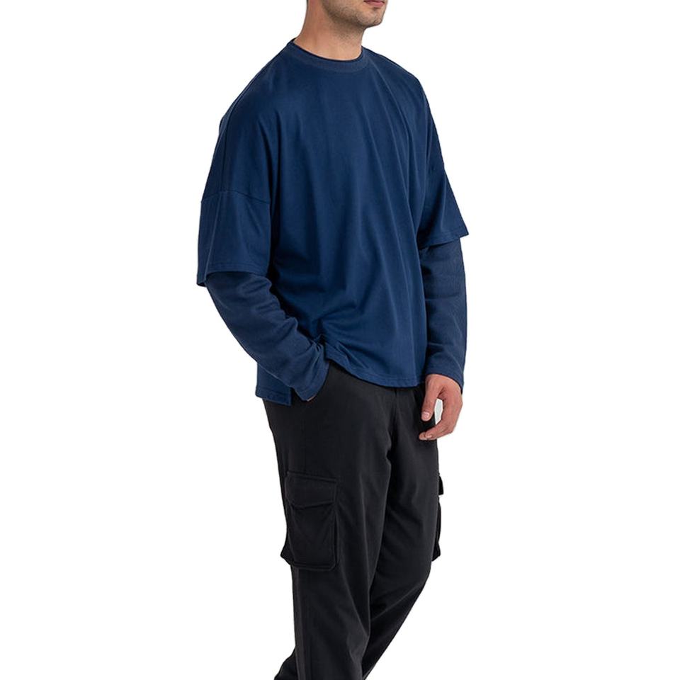 เสื้อยืดแขนยาวผู้ชายคอตตอน 100% ทรงโอเวอร์ไซส์ สองชั้น คอกลม ทรงปกติ สไตล์วินเทจ แฟชั่นสตรีท รุ่นใหม่ล่าสุด