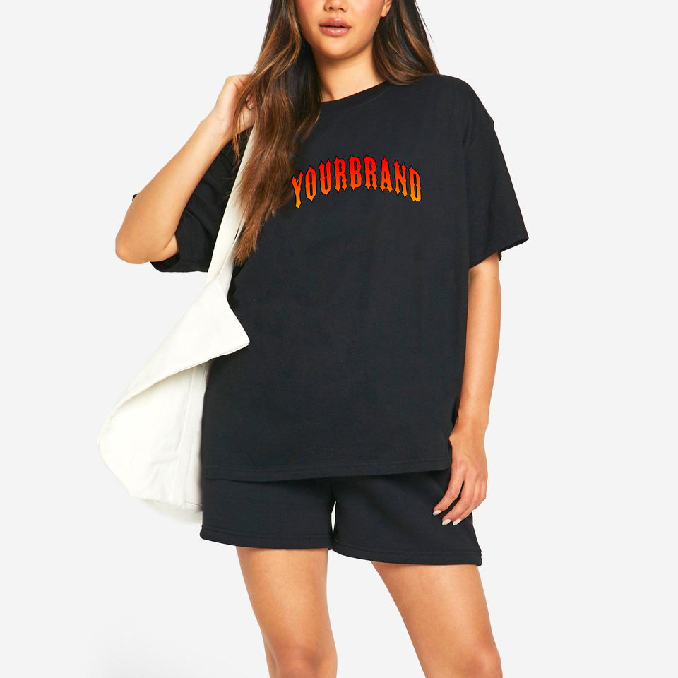 เสื้อยืดคอกลมและกางเกงขาสั้นผ้าฝ้าย 100% ไซส์ใหญ่ ระบายอากาศ แห้งเร็ว สำหรับผู้หญิง รับผลิตตามแบบ สร้างแบรนด์ของคุณเอง OEM