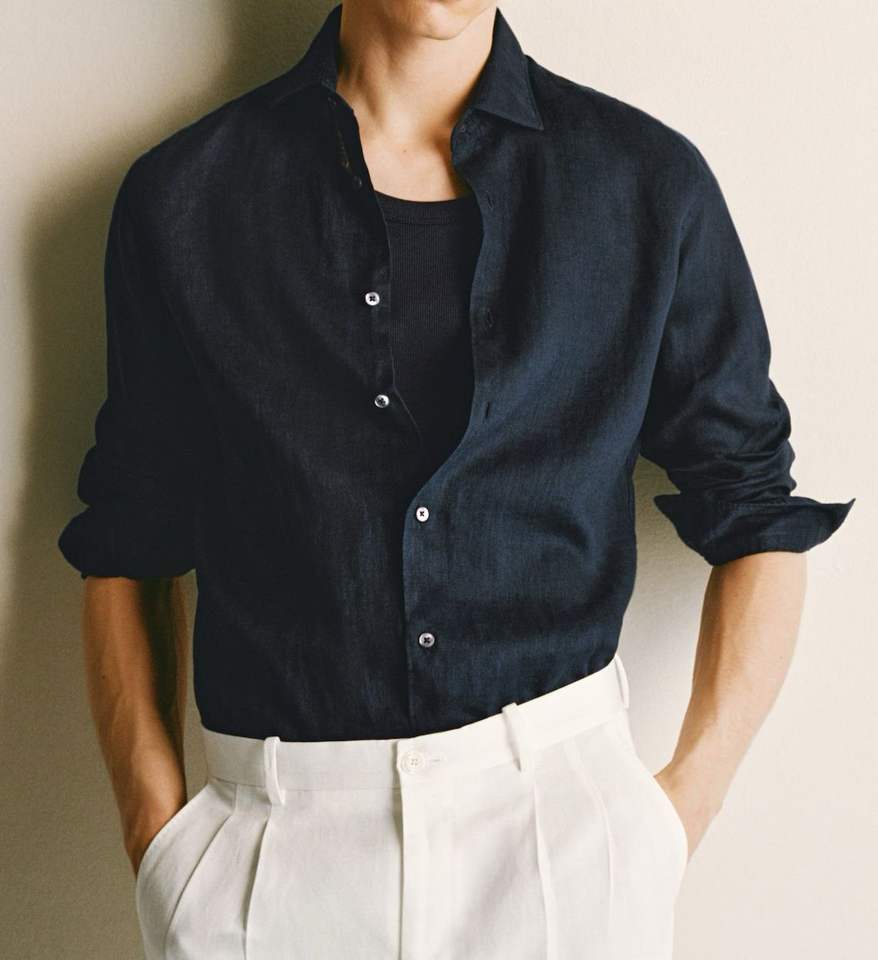 เสื้อเชิ้ตผ้าลินิน100% แขนยาวสำหรับผู้ชาย, ชุดเดรสลำลองทรงสลิมเนื้อผ้าลินินแท้เสื้อเชิ้ตใส่สบายมาใหม่