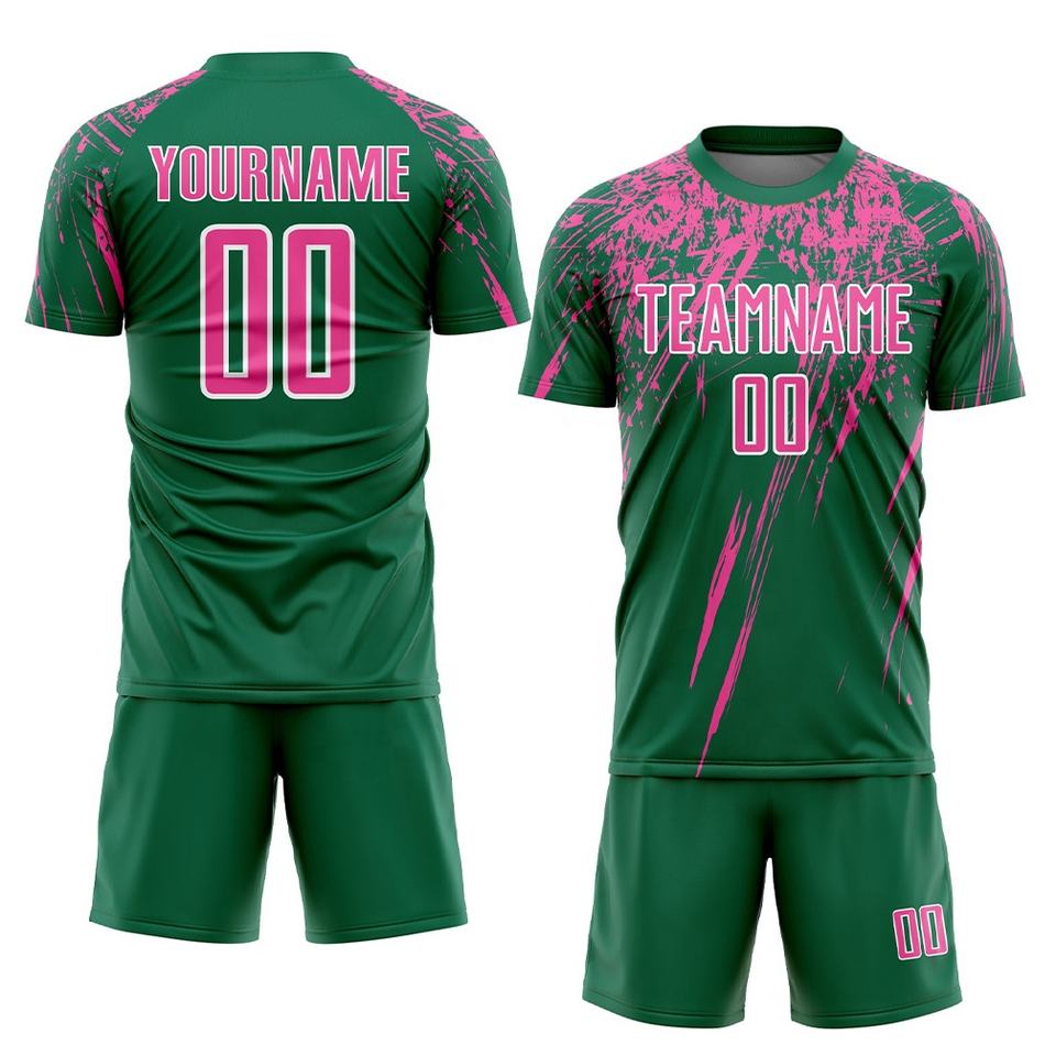 ชุดกีฬาฟุตบอลแบบสลิมฟิต ผ้าโพลีเอสเตอร์ 100% รุ่นใหม่ล่าสุด รับสกรีนโลโก้ สำหรับทีมผู้ใหญ่ สำหรับการฝึกซ้อม สีเขียวชมพู