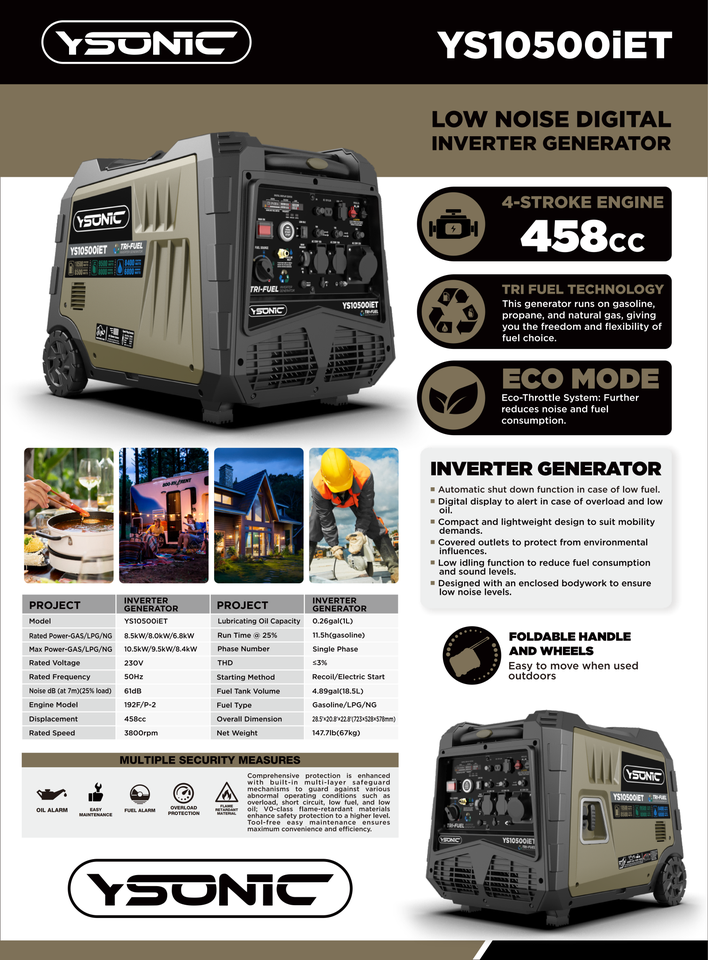 เครื่องกำเนิดไฟฟ้าเบนซินแบบพกพา รุ่นใหม่ 10500W เงียบพิเศษ พร้อมระบบอินเวอร์เตอร์ สำหรับใช้ในบ้าน เครื่องยนต์ OHV 4 จังหวะ สตาร์ทแบบดึง/ไฟฟ้า/รีโมท