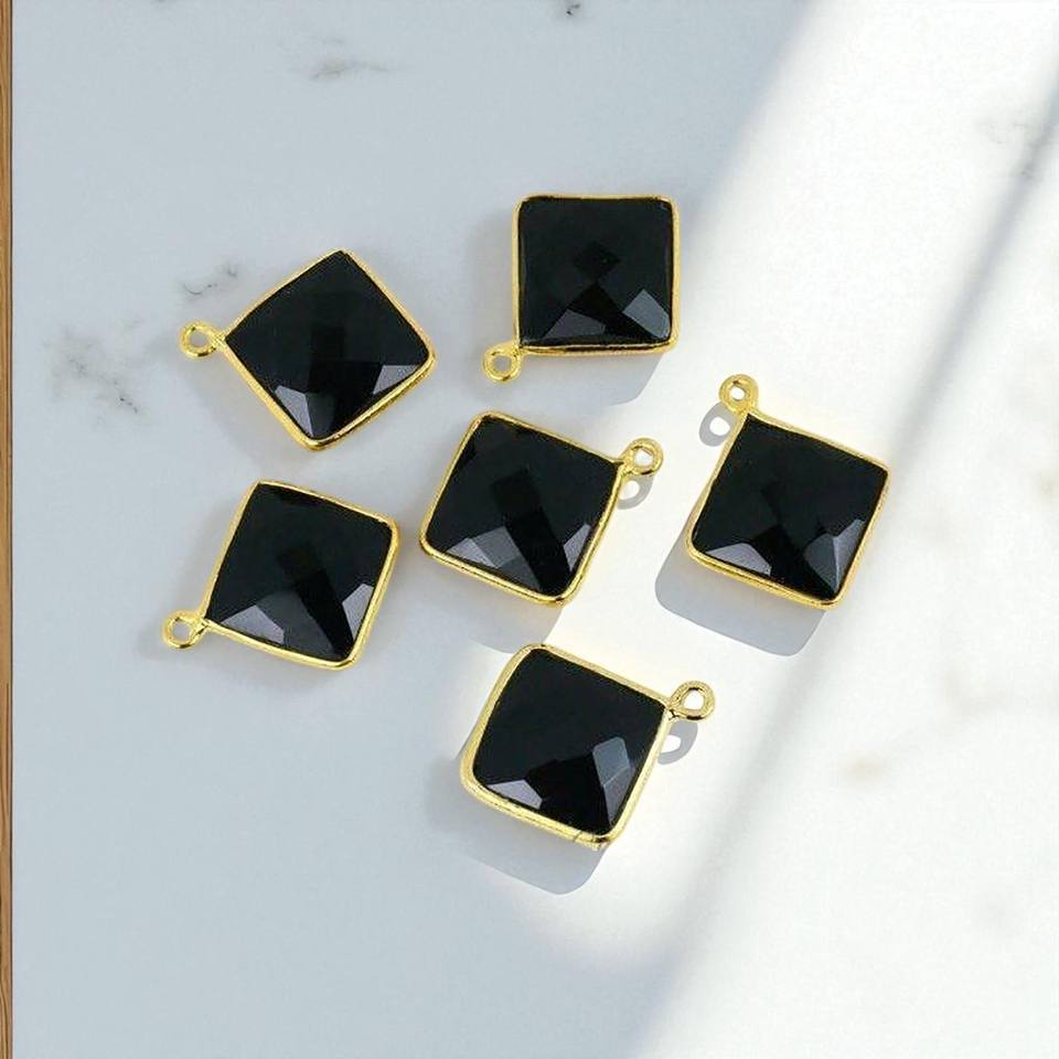 สินค้ามาใหม่12มม. สี่เหลี่ยมเหลี่ยมเพชรพลอยสีดำนิลจี้ประดับอัญมณีชุบทองสำหรับทำเครื่องประดับ
