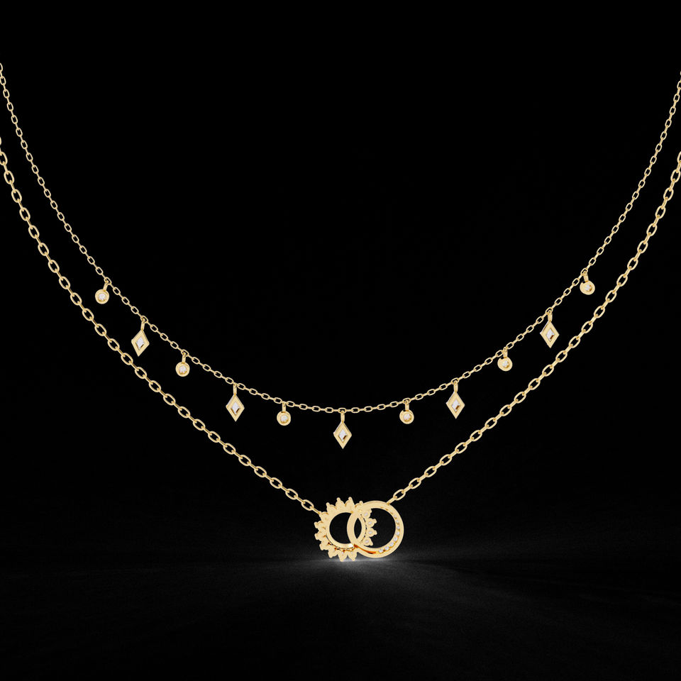 เครื่องประดับแบบประณีต14K มาใหม่สำหรับผู้หญิงสร้อยคอประดับเพชรสีทองบริสุทธิ์เครื่องประดับสำหรับงานแต่งการหมั้นของเจ้าสาวที่ทันสมัย