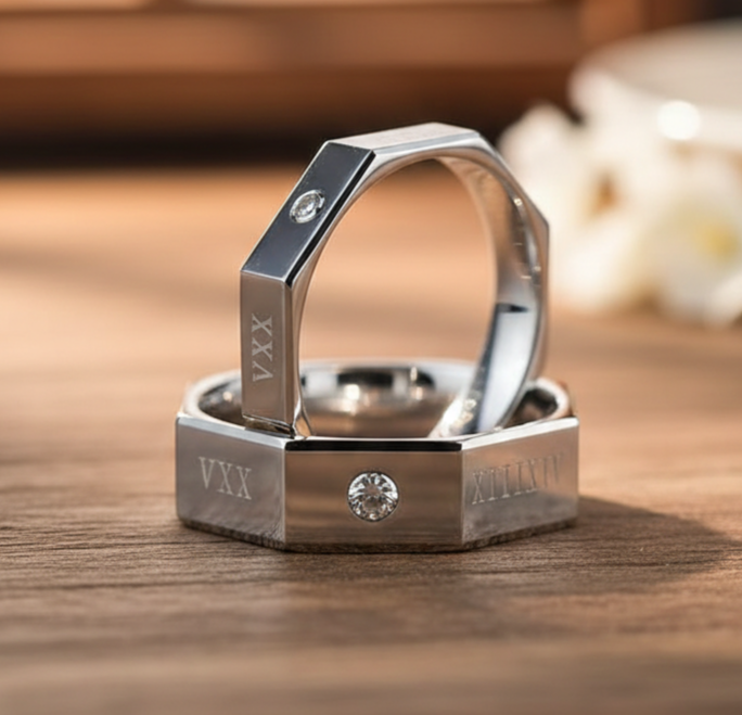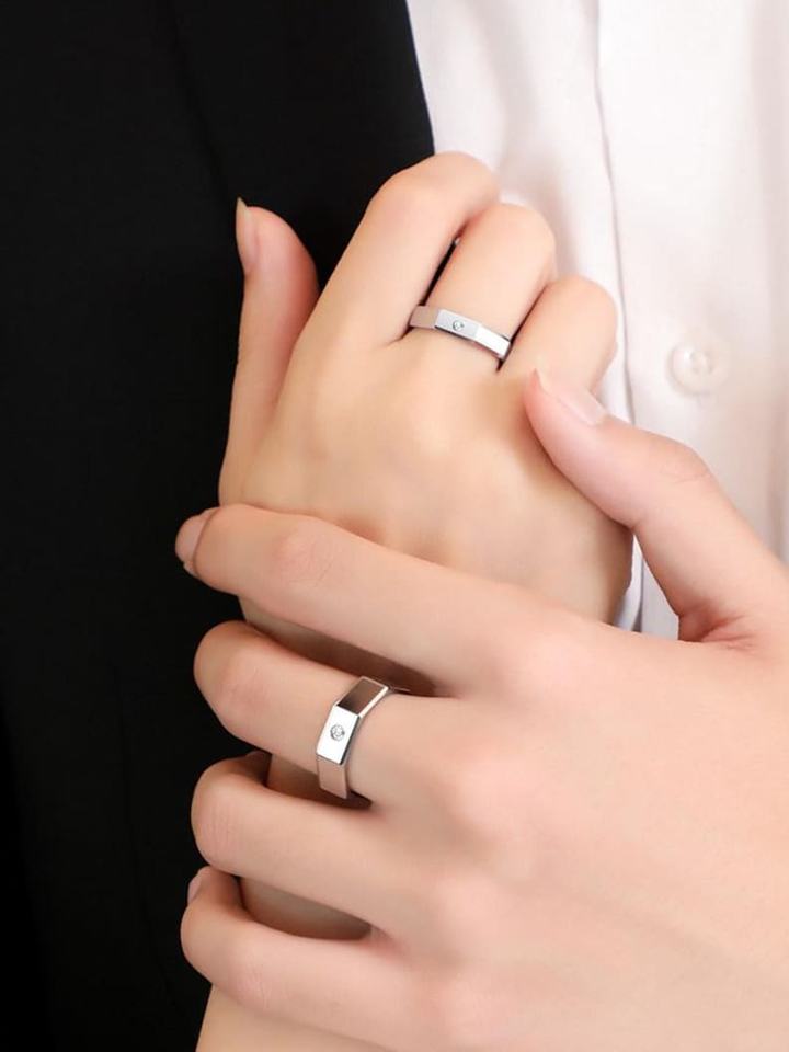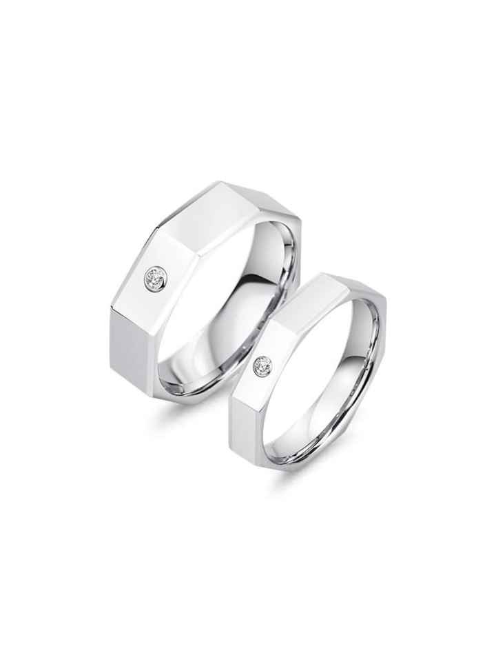 แหวนคู่แต่งงานดีไซน์หกเหลี่ยมประดับเพชร CZ เงินแท้ 925 ชุบทอง 14k สินค้ามาใหม่ ขายส่งเครื่องประดับหมั้น