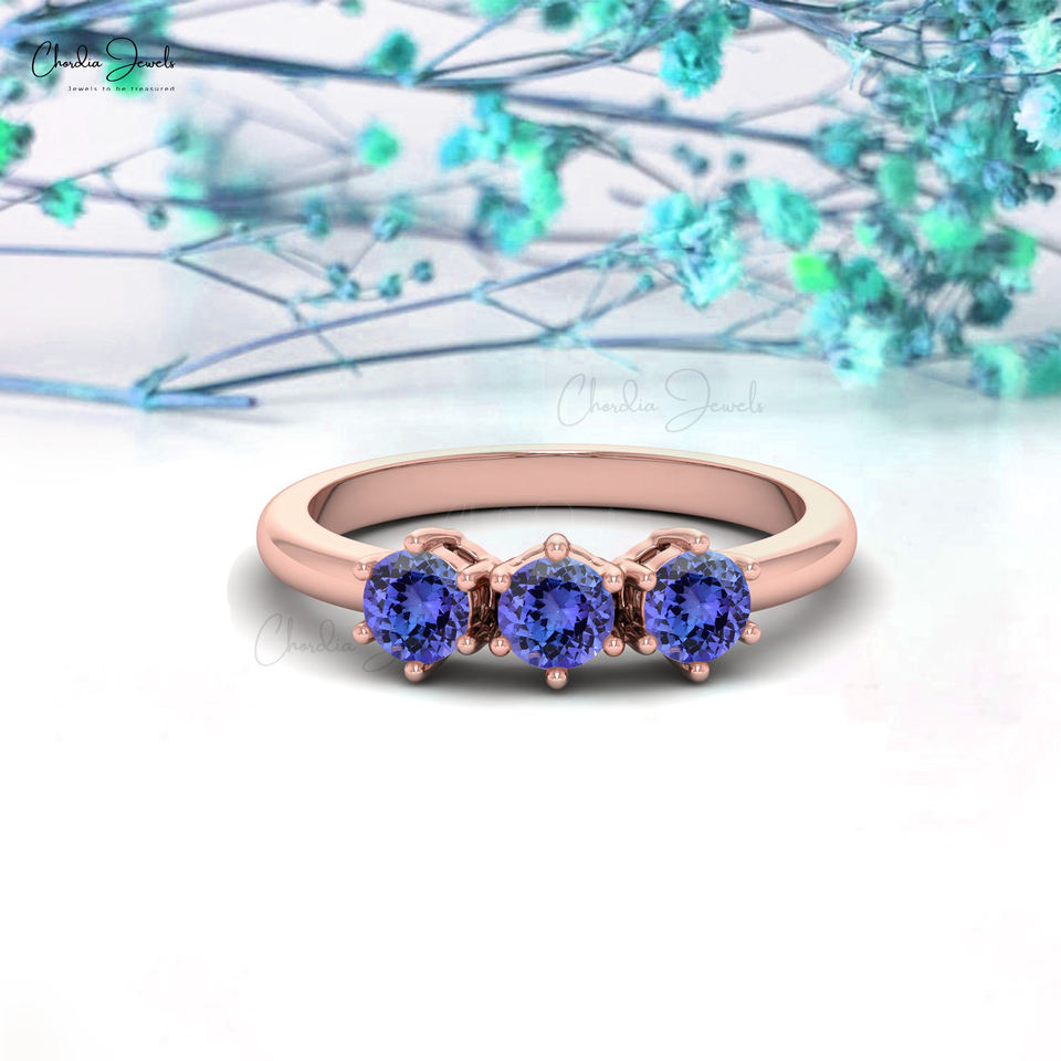 New Arrival 14k Solid Gold Three Stone Ring for Women Blue Tanzanite 3mm Cut Gemstone Engagement Wedding Jewelry Wholesale