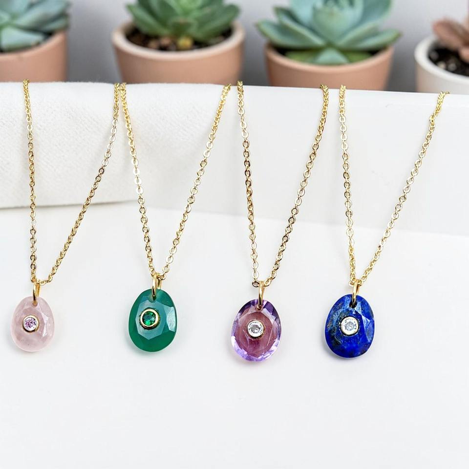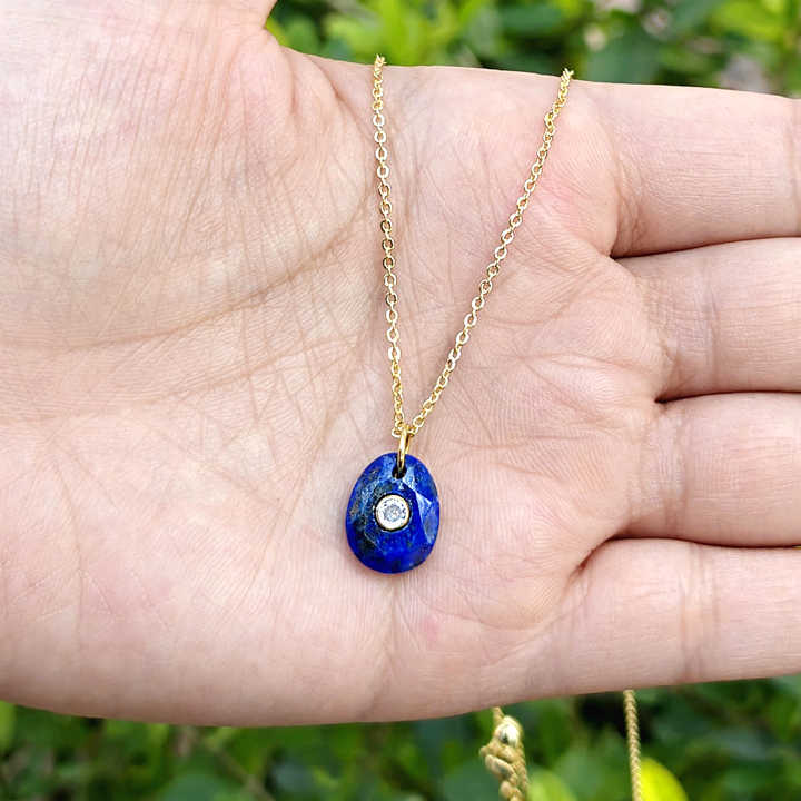 สร้อยคอทอง 18K ชุบทองเหลืองประดับด้วยลาพิส ลาซูลีและเพชร CZ ดีไซน์มินิมอล ประกายระยิบระยับ พร้อมจี้หินธรรมชาติ เหมาะสำหรับงานแต่งงาน สไตล์ร่วมสมัย