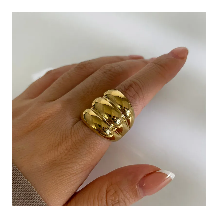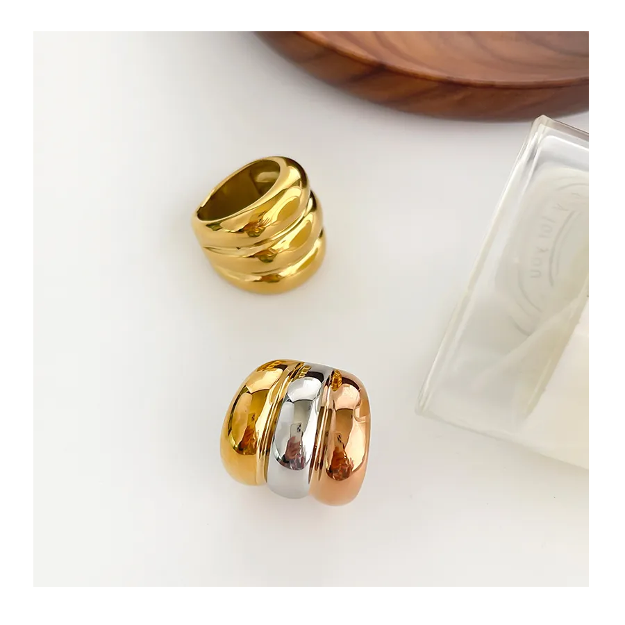 แหวนสแตนเลสสามชั้นชุบทอง18K สำหรับผู้หญิงส่งตรงจากซัพพลายเออร์อินเดีย