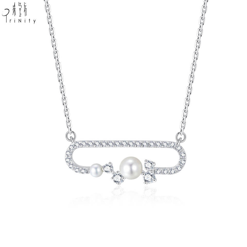 ชื่อ:สร้อยคอจี้เพชรสีทองคำขาวไข่มุกธรรมชาติ18K