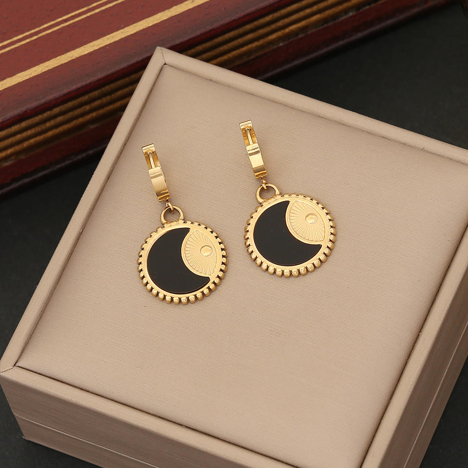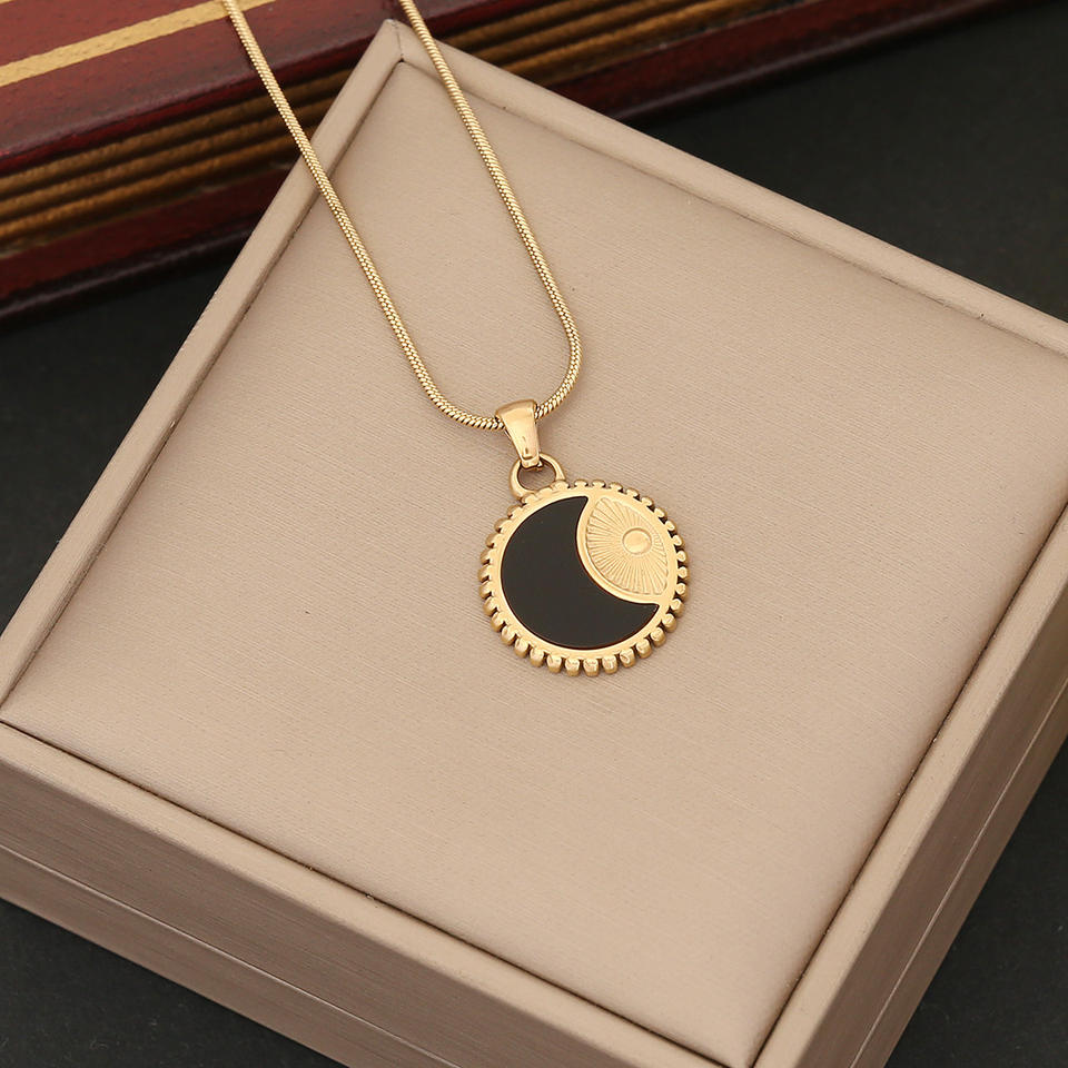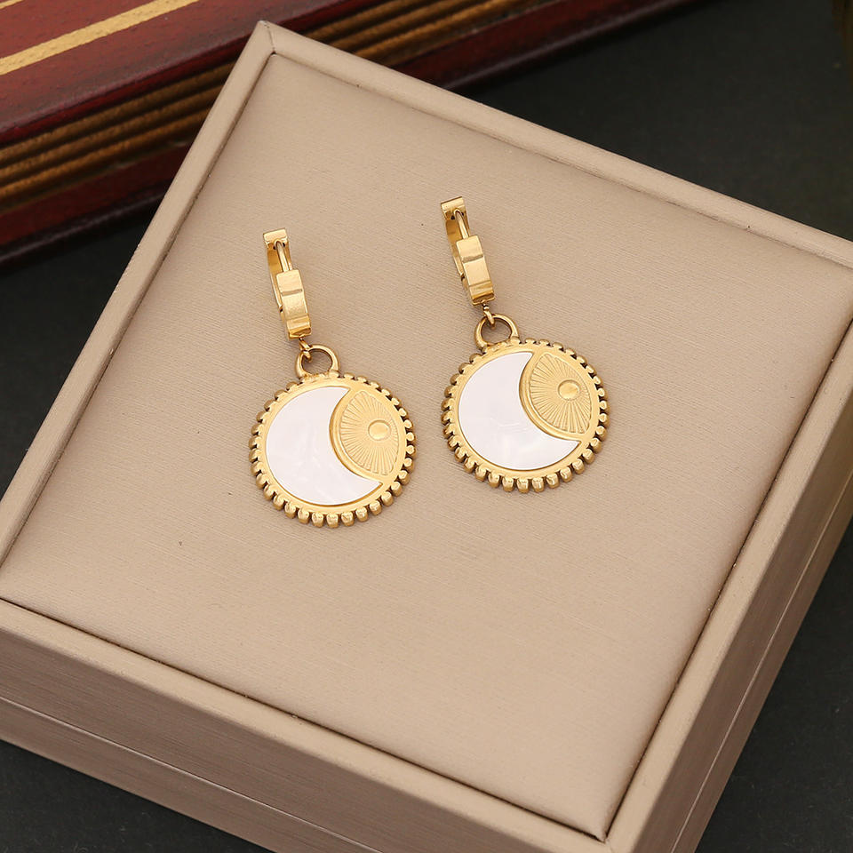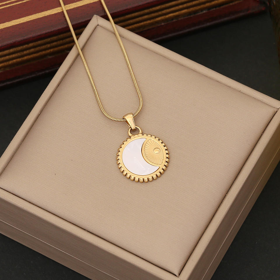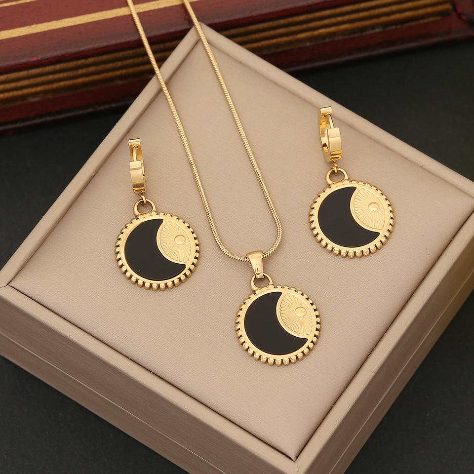 สินค้ามาใหม่ชุดเครื่องประดับดวงจันทร์สแตนเลส2ชิ้นชุบทอง18K ชุดสร้อยคอต่างหูไม่เสื่อมเสียสำหรับผู้หญิง