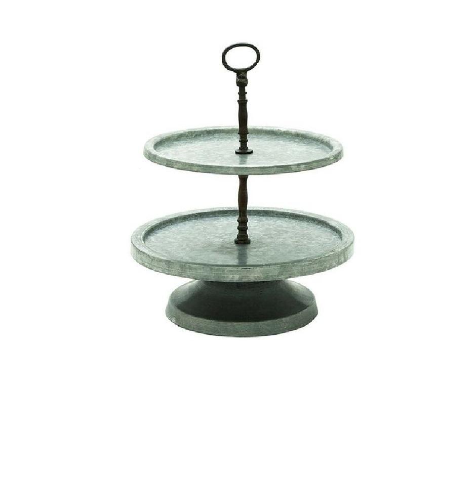 ที่วางเค้กเหล็กชุบสังกะสี2ชั้นมาใหม่อุปกรณ์บนโต๊ะอาหารถาดเค้กชุบสังกะสีแท่นวางโชว์ของสำหรับงานเลี้ยงวันเกิดงานหัตถกรรม