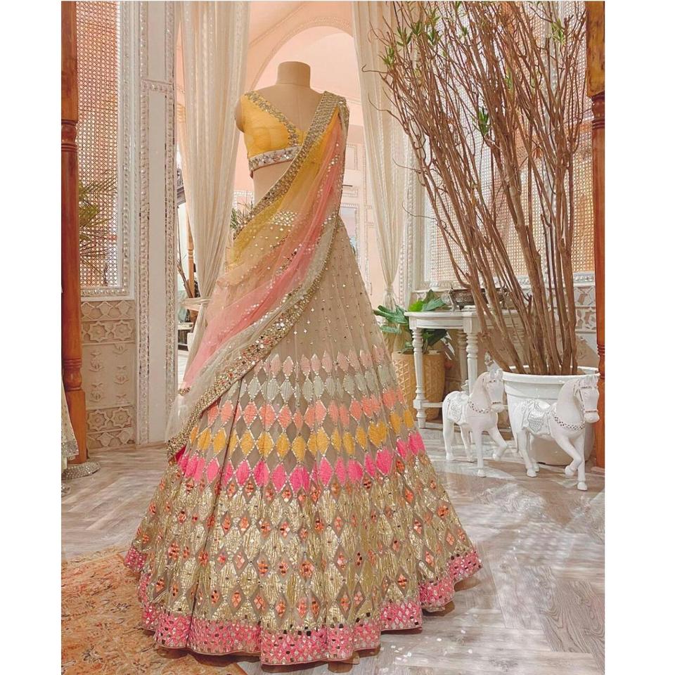 New Arrival 2022 Traditional Yellow Color Trendy Wedding Party Wear Heavy Net Embroidery Mirror Sequence Work Lehenga Choli