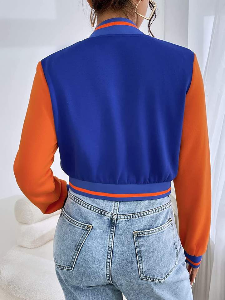 ชื่อสินค้า:เสื้อแจ็กเก็ตครอปท็อปสไตล์วาร์ซิตี้สำหรับผู้หญิง