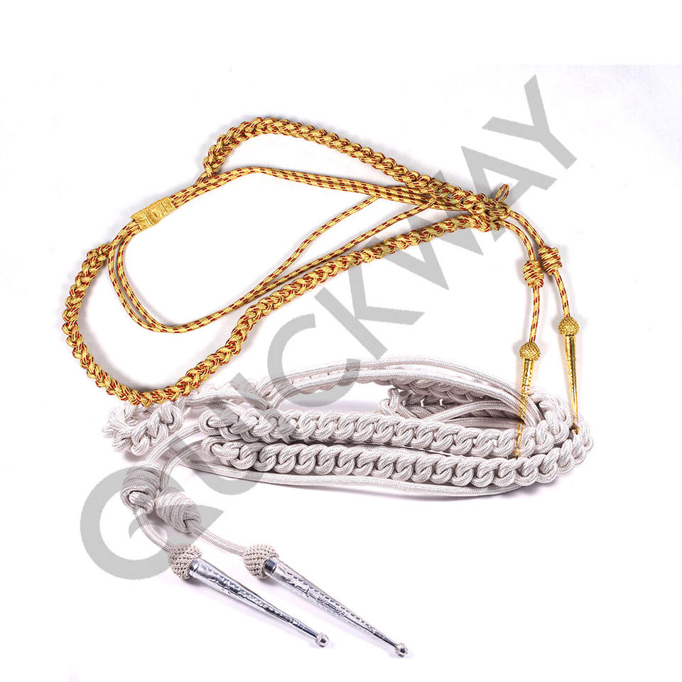 มาใหม่ล่าสุด2024ทองแท่งลวดAiguillettesเจ้าหน้าที่ชุดไหล่Aiguilletteที่กําหนดเองทองสีเงิน