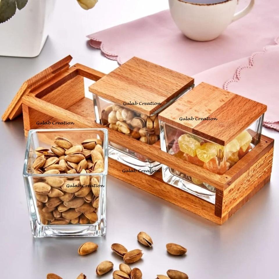 โถอะคริลิคสำหรับผลไม้แห้งพร้อมถาดไม้ชุดภาชนะใสพร้อมฝาปิดสำหรับขนมขบเคี้ยวถั่วแสดงเคาน์เตอร์ครัว