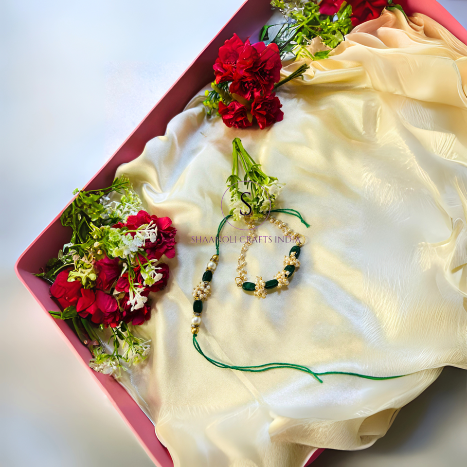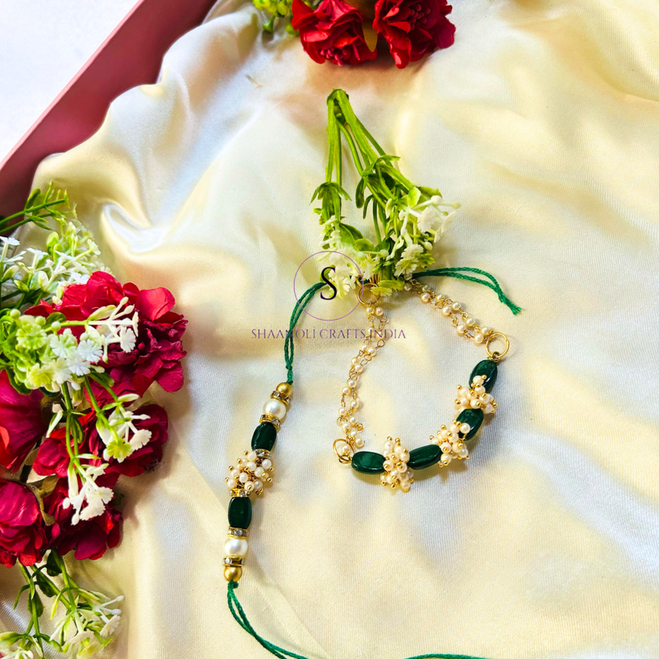 สินค้ามาใหม่ 2025 งานฝีมือดีไซเนอร์ สร้อยข้อมือประดับพลอยสีเขียว สำหรับเทศกาล ชุดคอมโบ บาไฮยา บาบี ราคี (ชุด 2 ชิ้น) ราคี