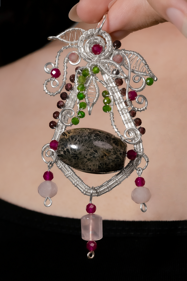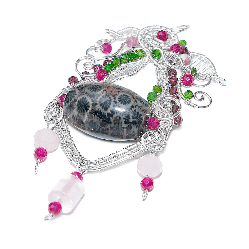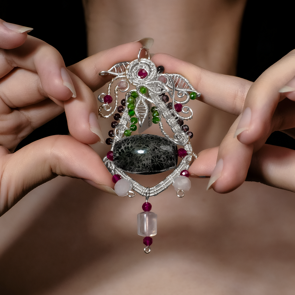 จี้รูปใบไม้ที่มีศูนย์ปะการังสีดำ-เป็นสัญลักษณ์ของการป้องกันและล่อ