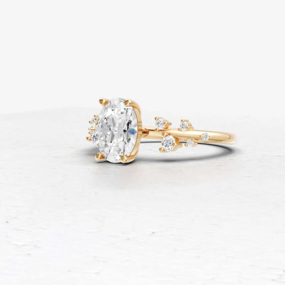แหวนหมั้นเพชรทรงรีทองคำแท้ 14K รุ่นใหม่ล่าสุดปี 2026 ประดับเพชรแล็บโกรว์แบบคลัสเตอร์ ดีไซน์สวยงาม เหมาะเป็นของขวัญวันครบรอบสำหรับผู้หญิง