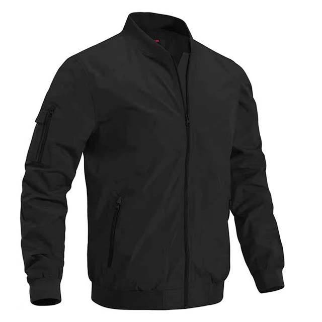 แจ็คเก็ตบอมเบอร์ผ้าแคนวาสโพลีเอสเตอร์ 100% ปักโลโก้ตามสั่ง รุ่นใหม่ล่าสุด ปี 2026 สำหรับผู้ชาย สไตล์ลำลอง ซิปสีดำ กันน้ำ กันลม