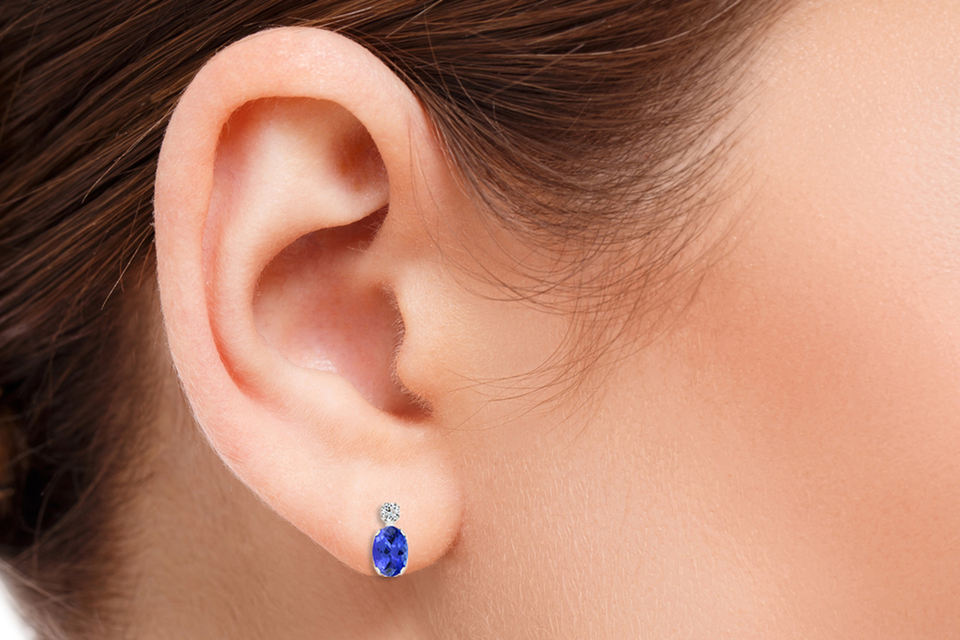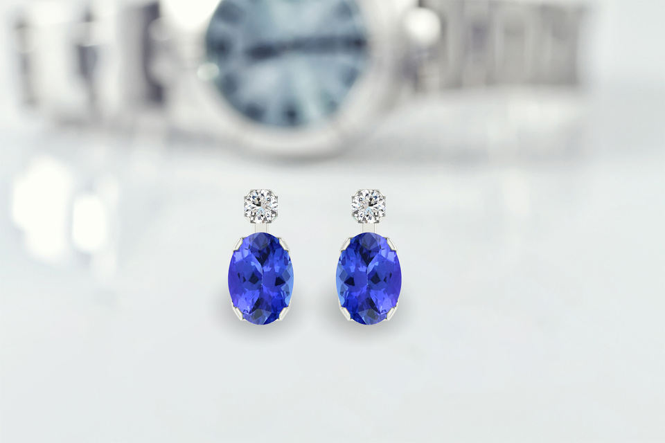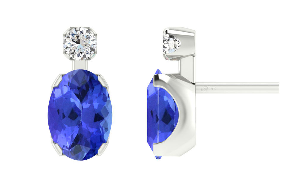 สินค้ามาใหม่ 2026 ต่างหูเพชรและแทนซาไนต์ทรงรีขนาด 7x5 มม. ทองคำขาว 14k แท้ ดีไซน์หรูหรา ของขวัญวันสตรีที่สมบูรณ์แบบ