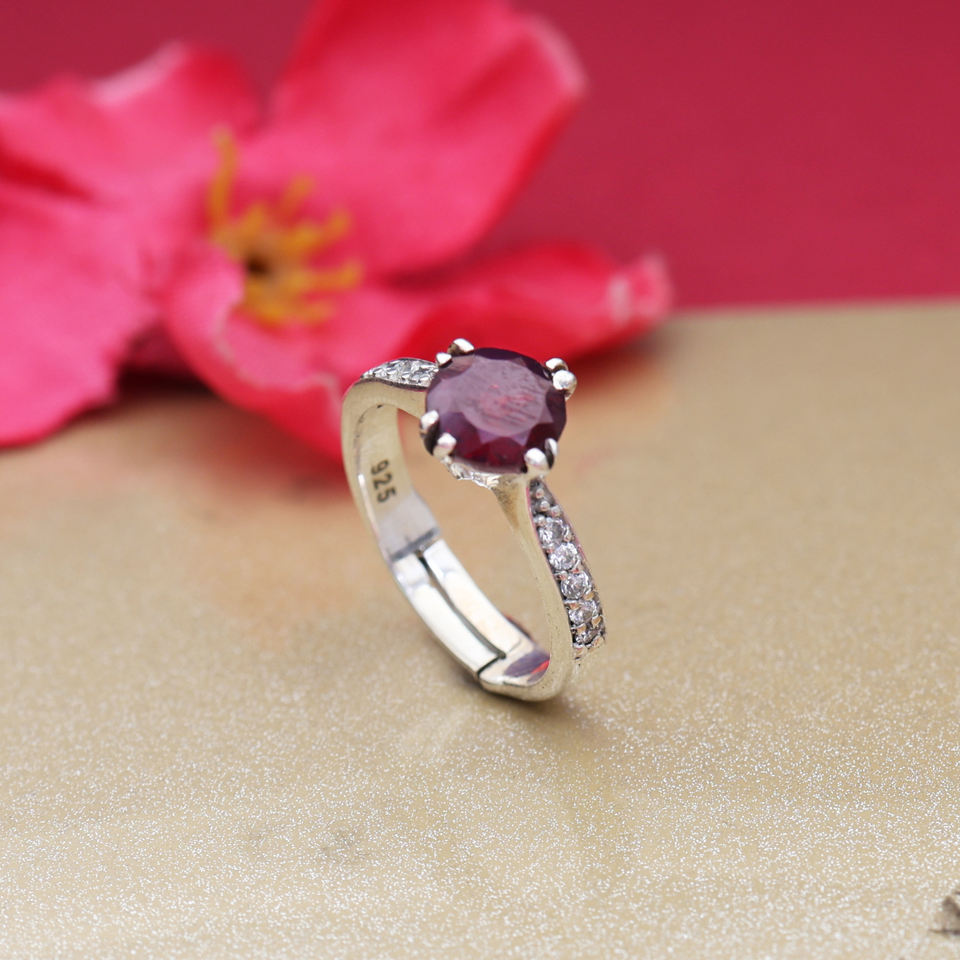 แหวนปรับขนาดได้รุ่นใหม่ปี 2026 ประดับทับทิมและเงิน - เครื่องประดับอัญมณีที่สมบูรณ์แบบสำหรับผู้หญิงและเด็กผู้หญิง สวมใส่ในงานแต่งงาน