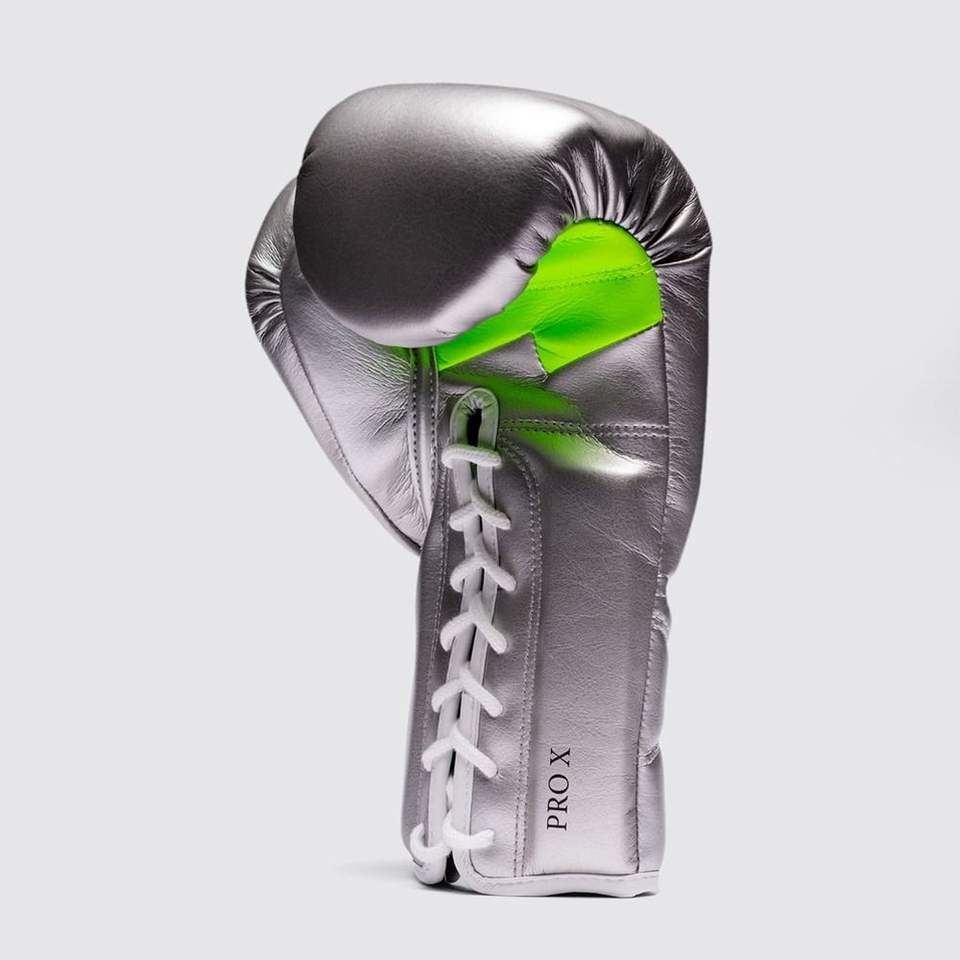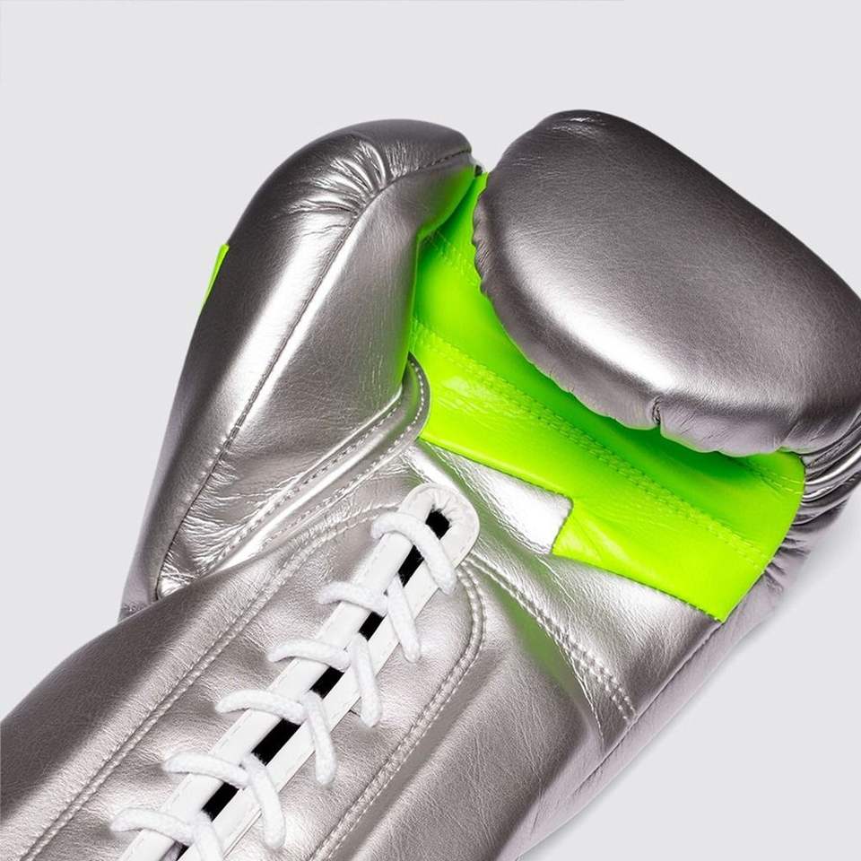 สินค้ามาใหม่ 2026 ถุงมือชกมวยสีเงินและสีเขียวนีออน สำหรับฝึกซ้อมและแข่งขัน คุณภาพสูง หนังแท้ รับสกรีนโลโก้