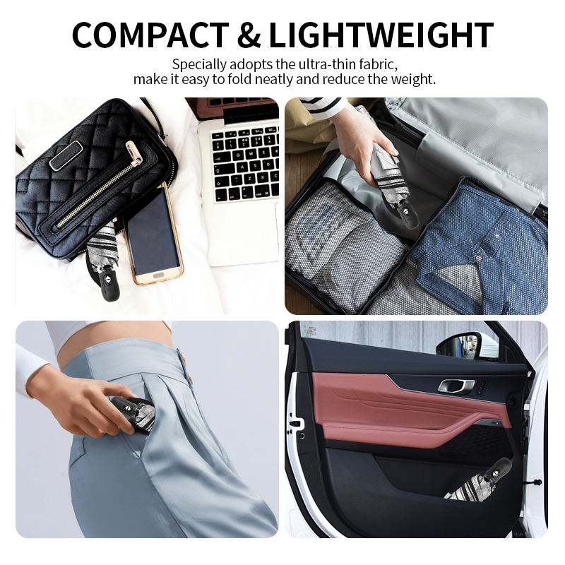 ร่มพับพกพาขนาด 21 นิ้ว รุ่นใหม่ล่าสุด ปี 2026 น้ำหนักเบาพิเศษ 6 ซี่โครง ป้องกันแสงแดด SPF 30+ เคลือบสารกันรังสียูวีสีเงิน เหมาะสำหรับพกพาในช่วงฤดูร้อน