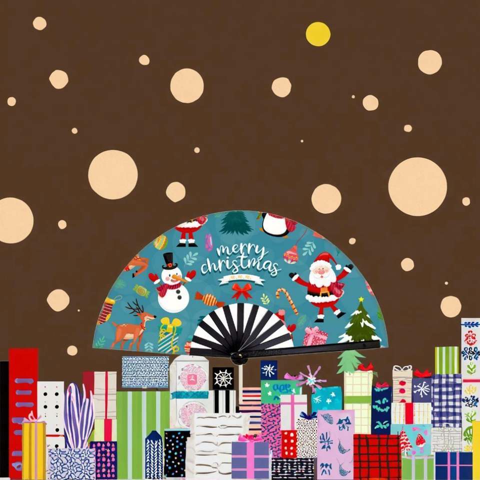 พัดไม้ไผ่พกพาขนาด 33 ซม. รุ่นใหม่ล่าสุด รับสกรีนโลโก้ ของขวัญคริสต์มาส ของที่ระลึกงานปาร์ตี้ หรือของตกแต่งงานฝีมือ