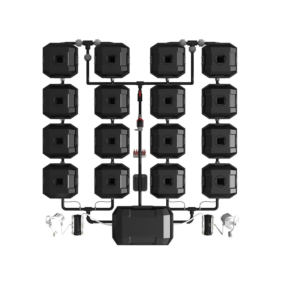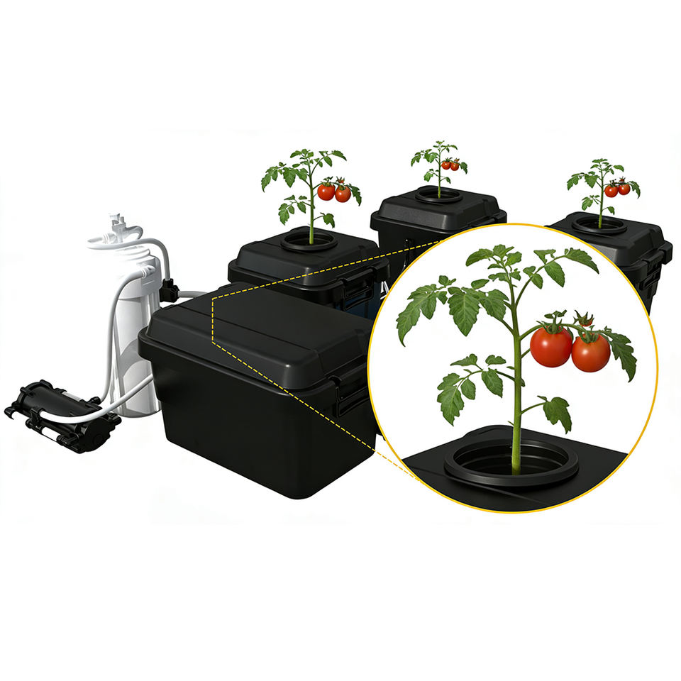 High-Pressure Misting Nozzles: Four high-pressure misting nozzles per bucket deliver fine nutrient mist directly to the root zone, enhancing oxygenation and nutrient uptake.