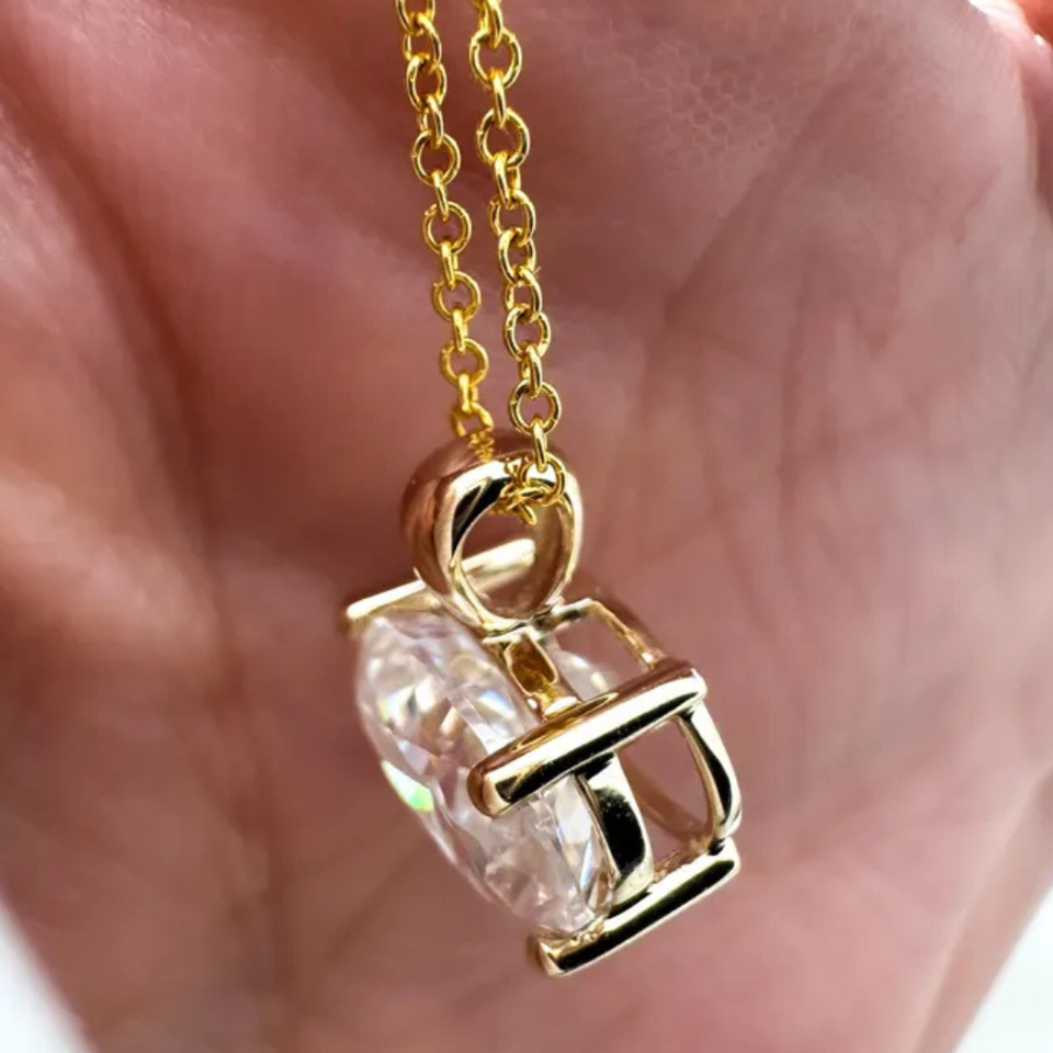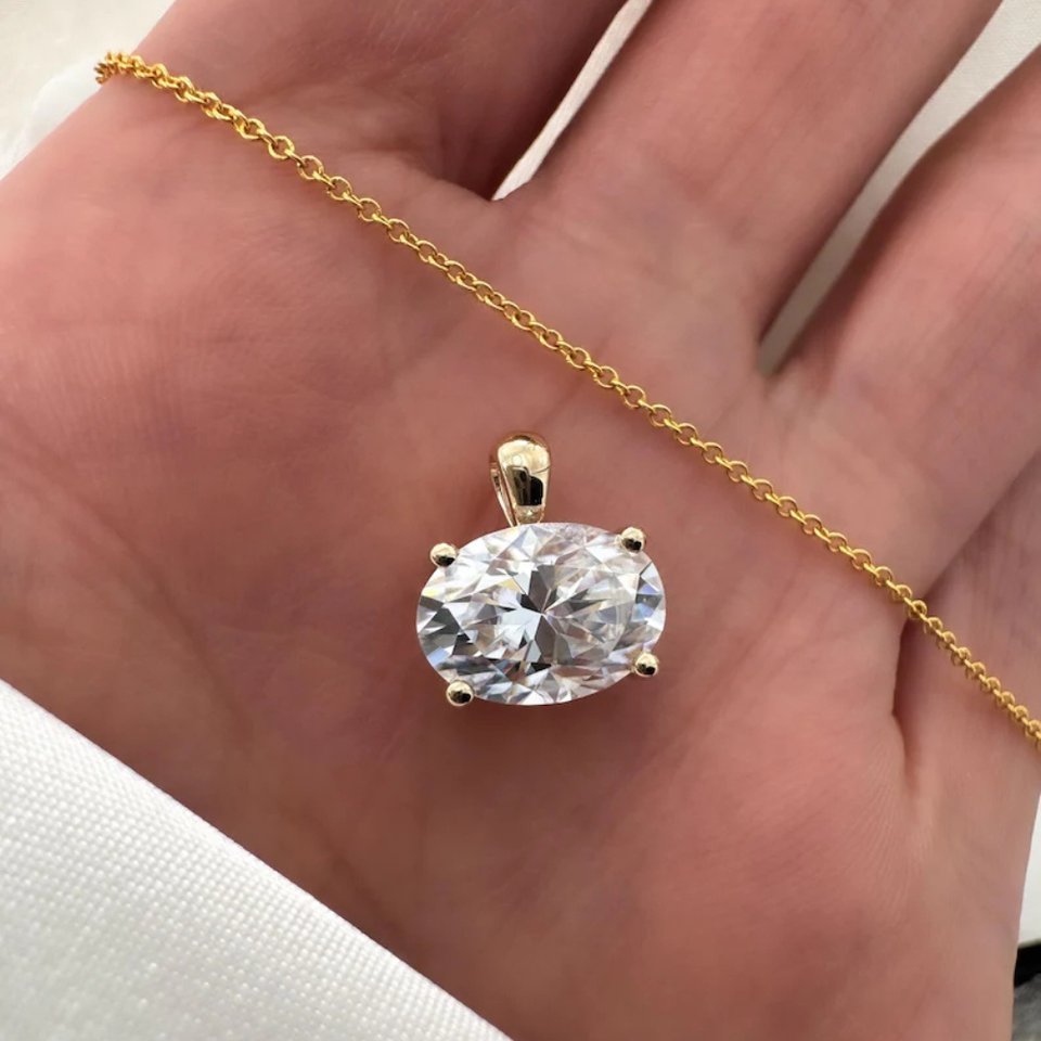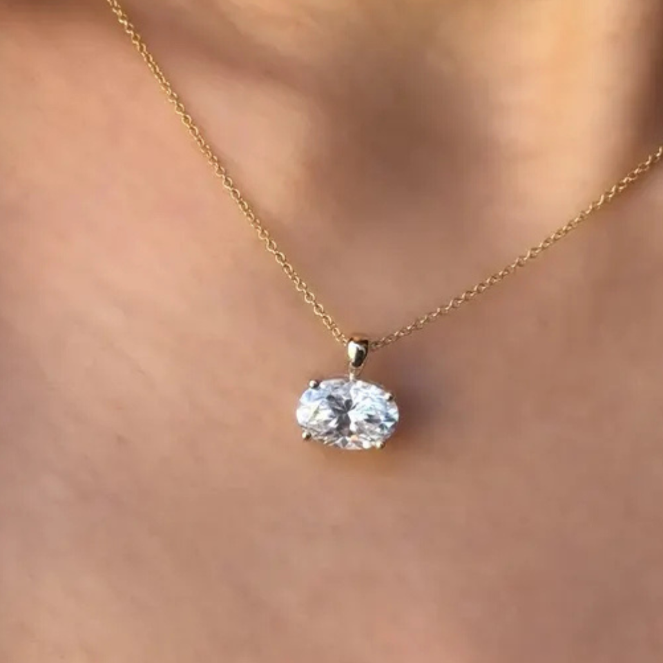 เพชรแล็บโกรนทรงรี 4 กะรัต แบบเจียระไนบริลเลียนท์ จี้เดี่ยว ความใส VS สี EF ชุบโรเดียม ทอง 14K รับรองโดย IGI สินค้ามาใหม่