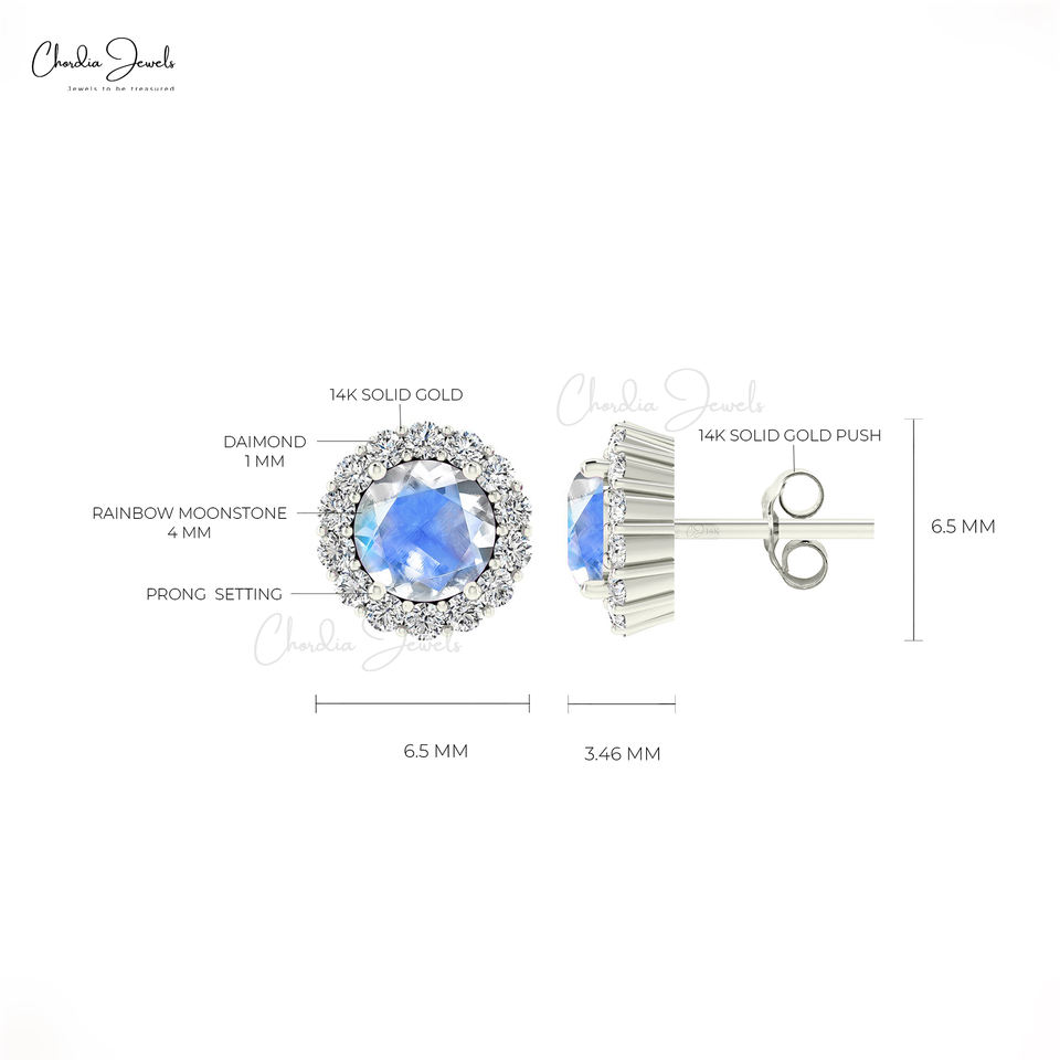 สินค้ามาใหม่กระดุมมูนสโตนสีรุ้งขนาด4มม. ต่างหูเพชรรัศมีสีทอง14K ต่างหูจิลเวอรี่เครื่องประดับขายส่งราคาโรงงาน