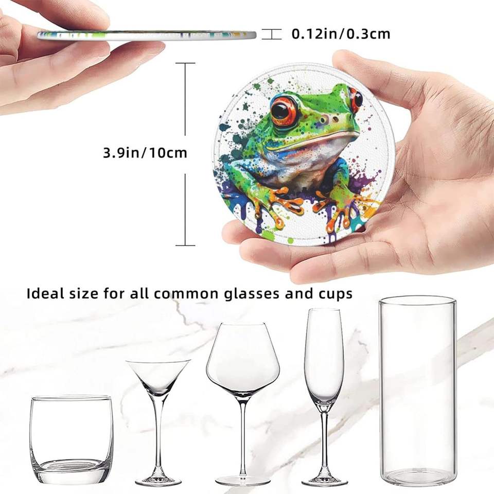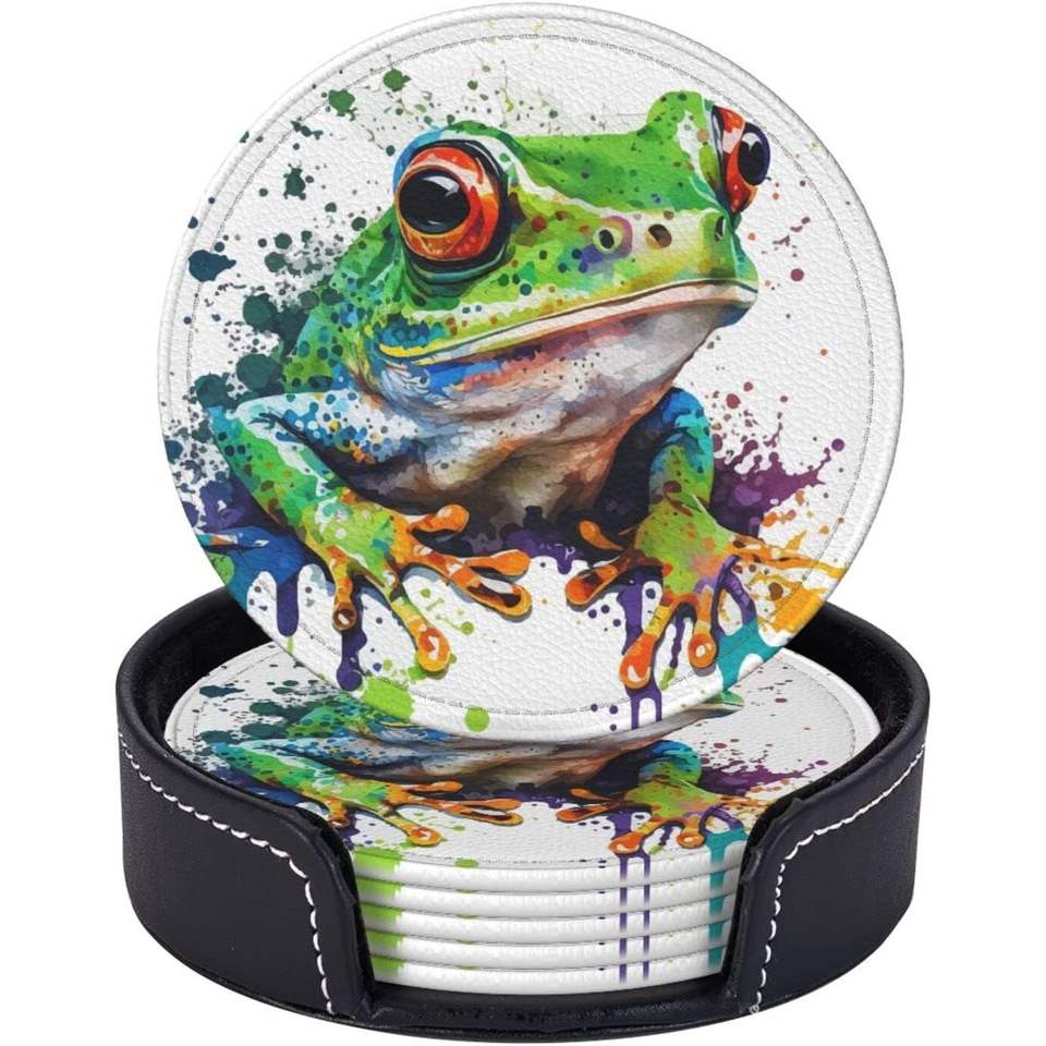 ที่รองแก้วหนังสีน้ำลายกบสาดน้ำมาใหม่อุปกรณ์เครื่องดื่มอุปกรณ์ตกแต่งโต๊ะกาแฟหรูหราสำหรับห้องครัวห้องนั่งเล่น