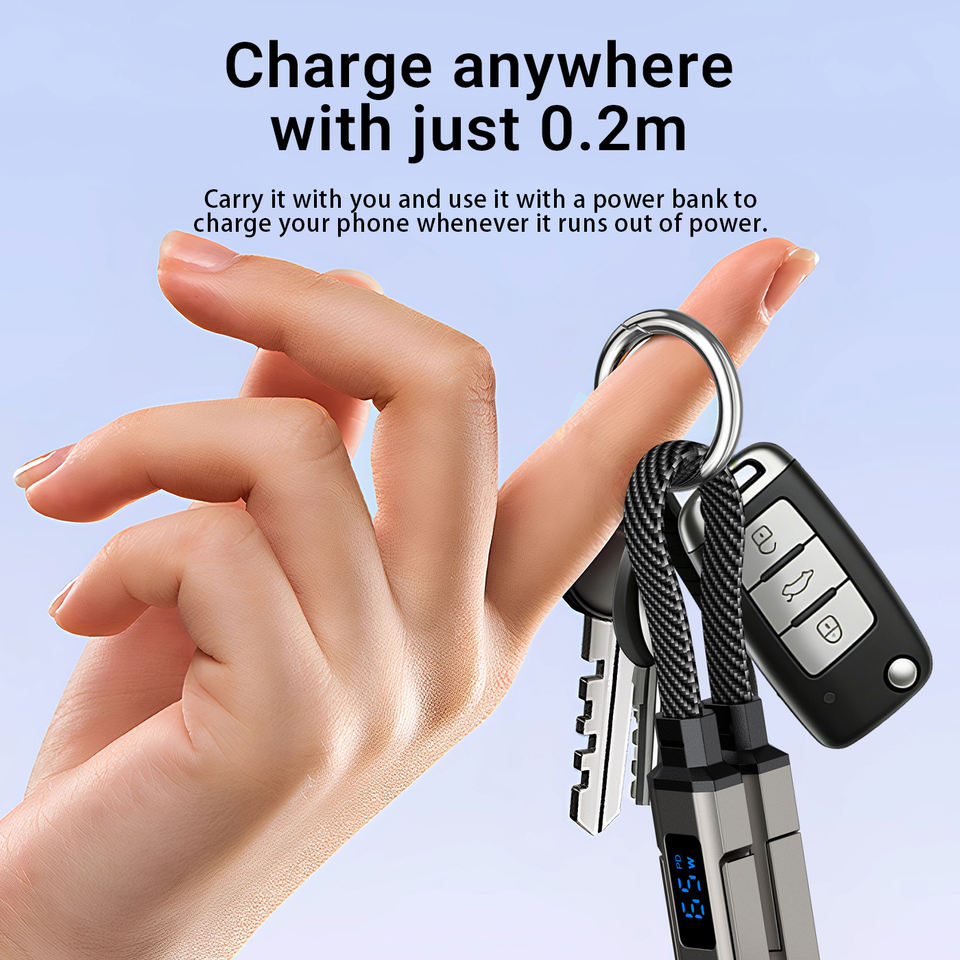 สายชาร์จเร็วแบบพกพา 65W 27W รุ่นใหม่ สายถัก 0.2 เมตร พร้อมสายคล้องพวงกุญแจ จอ LED แสดงผล 4 in 1 สาย USB C สำหรับ iPhone