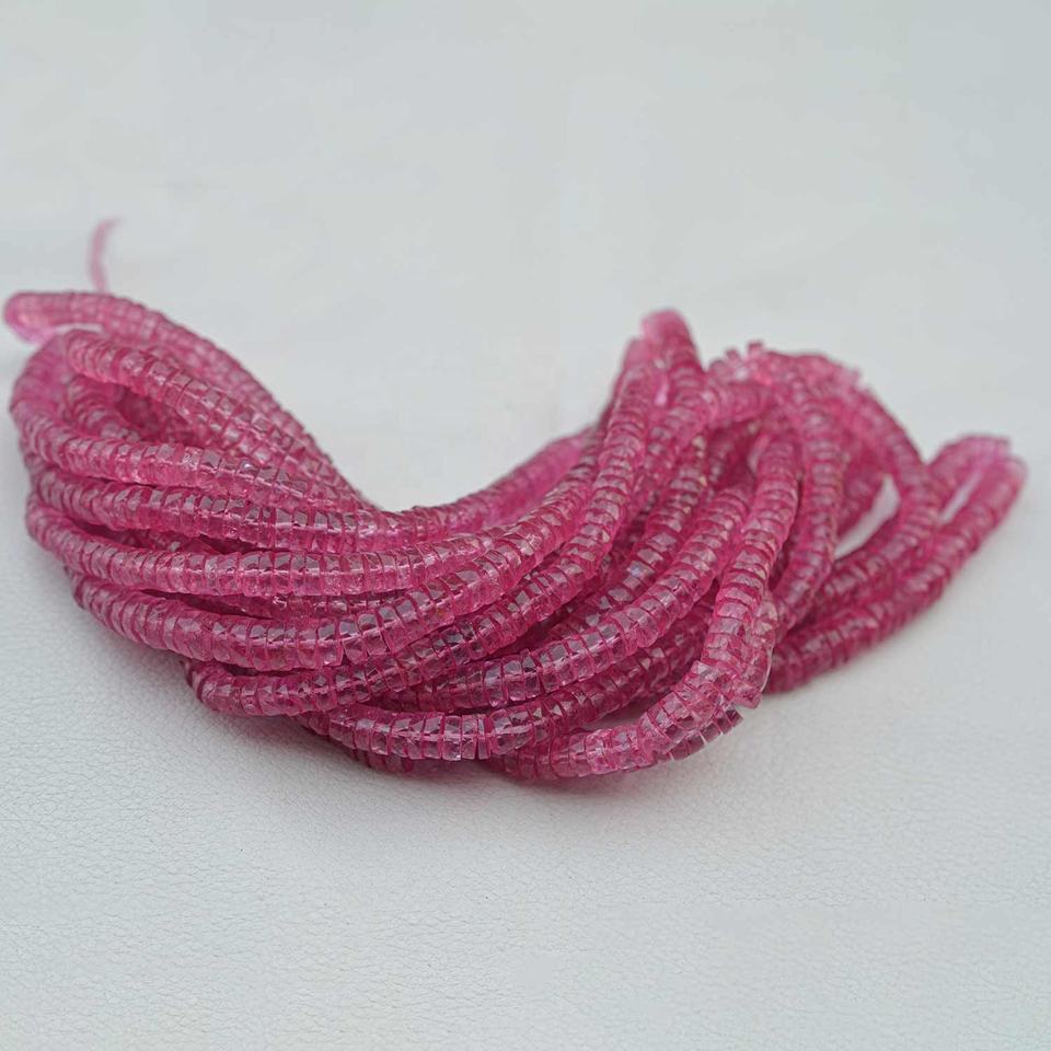 สร้อยคอหินธรรมชาติสีชมพูโทแพซทรงเฮชิขนาด 6 มม. 7 มม. งานแฮนด์เมดสำหรับผู้หญิง