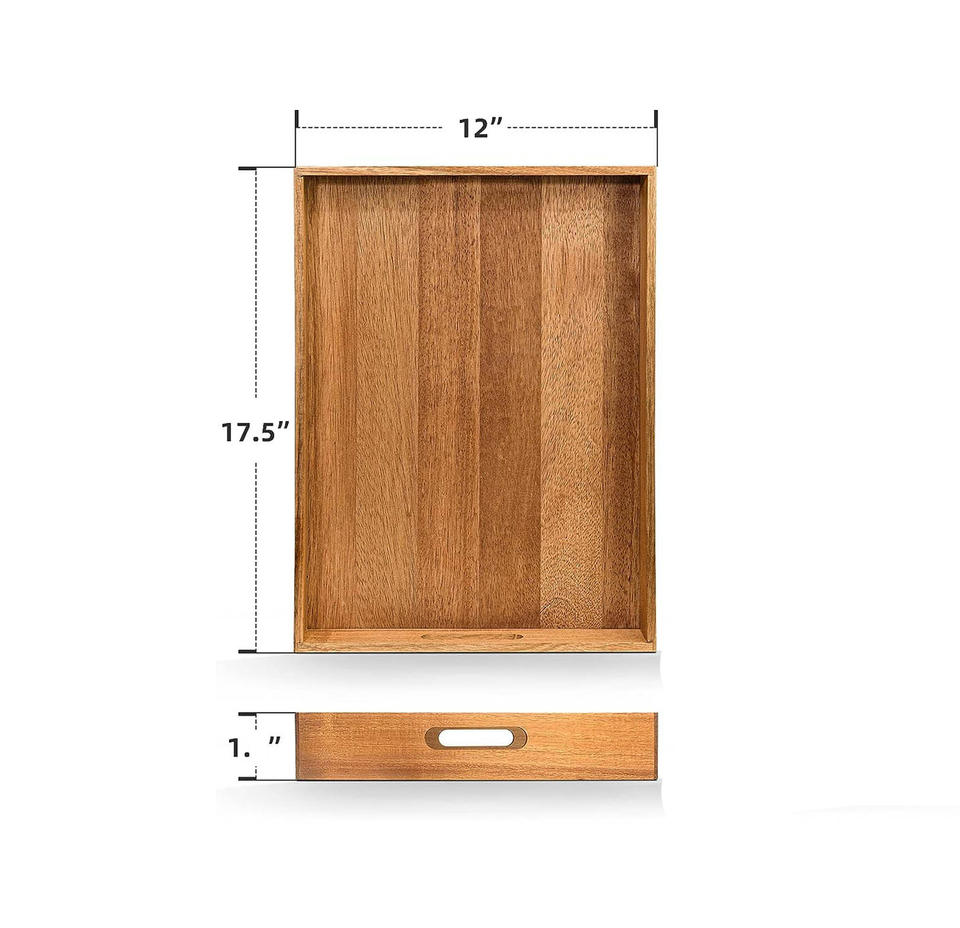 ถาดเสิร์ฟอาหารไม้อะคาเซียพร้อมด้ามจับถาดเสิร์ฟอาหารทำจากไม้สไตล์พรีเมียมถาดตกแต่งบ้าน