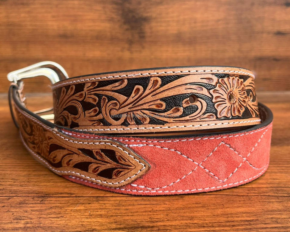 New Arrival Adjustable Fashion Boot Stitch Hand Tooled Suede Leather Belt for Men & Women Designer Famous Brand Cow Leather Belt