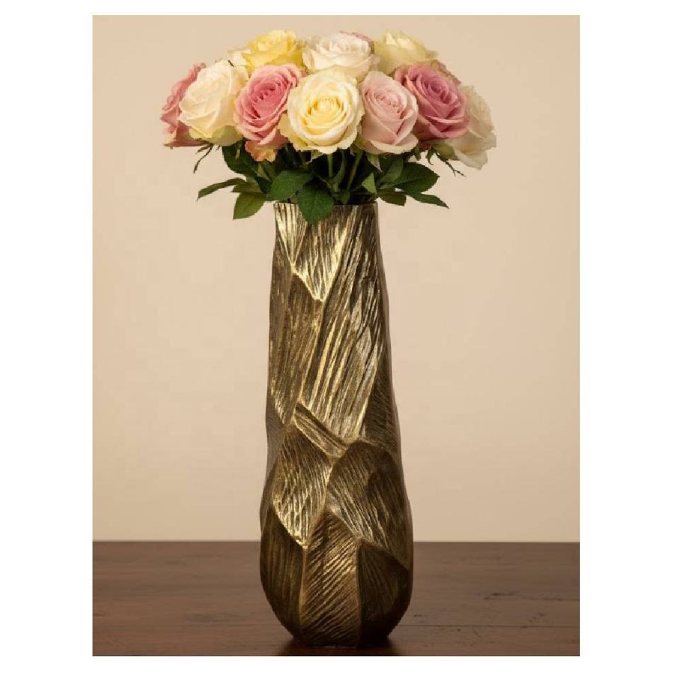 แจกันดอกไม้อลูมิเนียมสีทองทำมือแบบใหม่ ของตกแต่งบ้านคุณภาพสูงสำหรับวางบนโต๊ะ