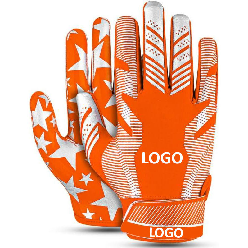 ถุงมืออเมริกันฟุตบอลแบบเต็มนิ้ว ปรับสายรัดข้อมือได้ กันลื่น ทนทาน สำหรับทุกเพศ พิมพ์โลโก้ได้ตามต้องการ สินค้ามาใหม่