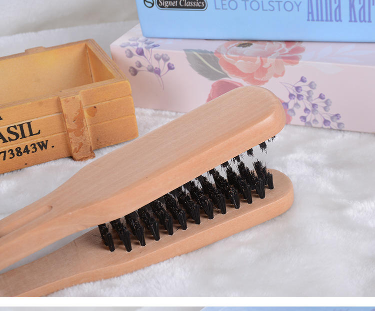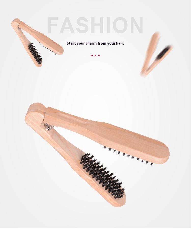 แปรงหวีผมตรงสำหรับผู้หญิง รุ่นใหม่ ทนความร้อน ป้องกันไฟฟ้าสถิตย์ ด้ามไม้ไผ่รูปตัววี ขนแปรงคู่ ทนทาน พร้อมหวีไนลอน